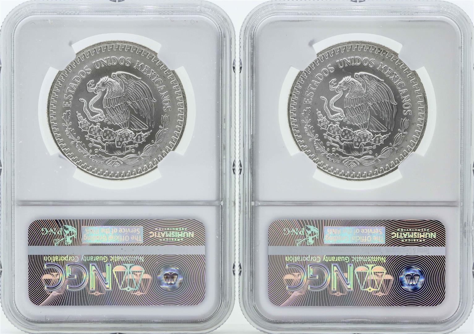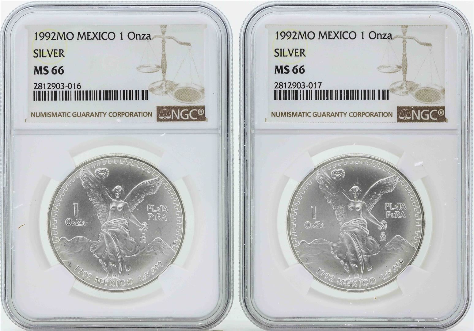 One Set of (2) 1992MO Mexico 1 Onza Silver Libertad Coins NGC MS66. NGC Certified.