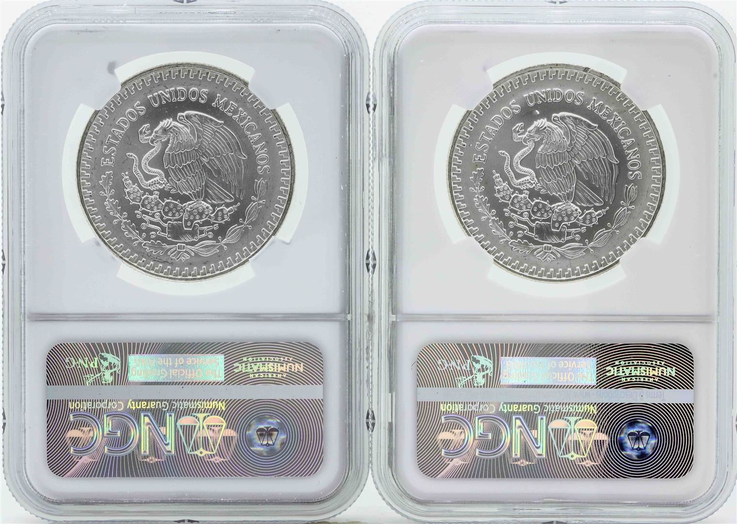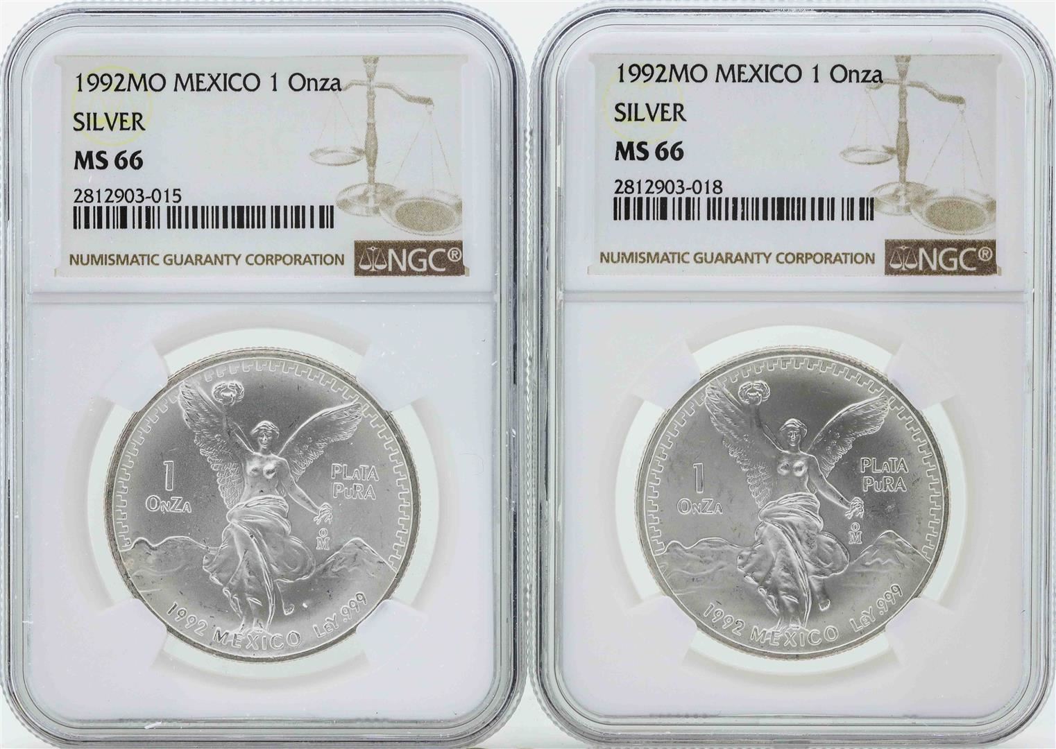 Set of (2) 1992MO Mexico 1 Onza Silver Libertad Coins NGC MS66