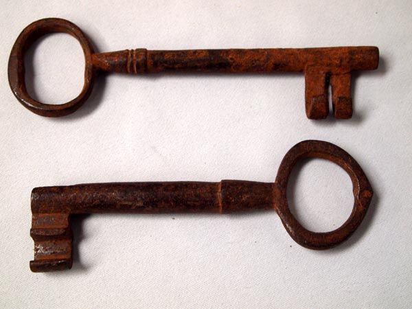 Set of 2 Antique Hand Forged Keys - Texas Estate. Most likely jail keys, these come from a Texas estate. Measure 5.5''Lx2.5''W.