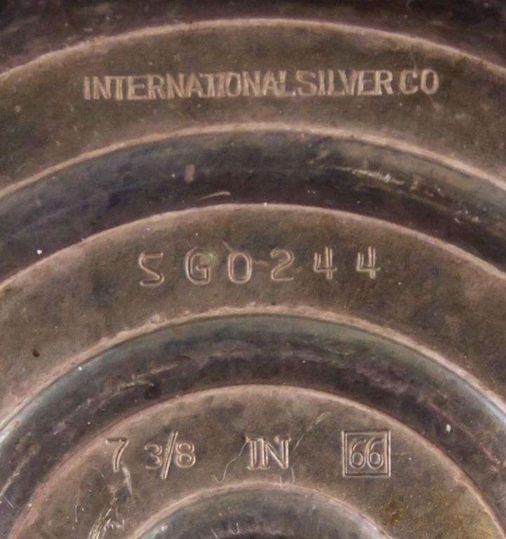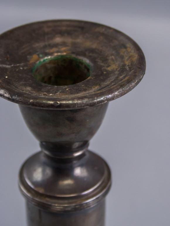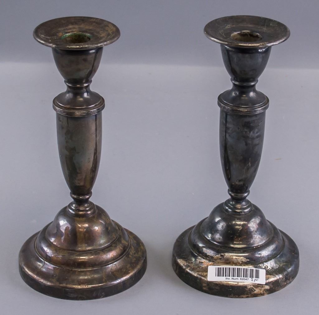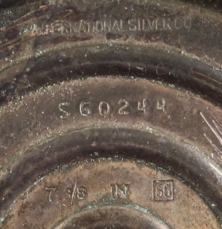 Set of 2 candle sticks. "INTERNATIONAL SILVER CO / SG0244" stamped on base. 20 x 10 cm. 2 kg.