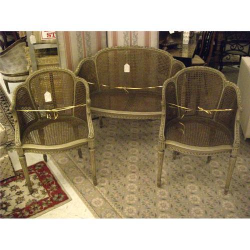 <tr><td>Title:Set of 2 Caned Chairs and Settee</td></tr>