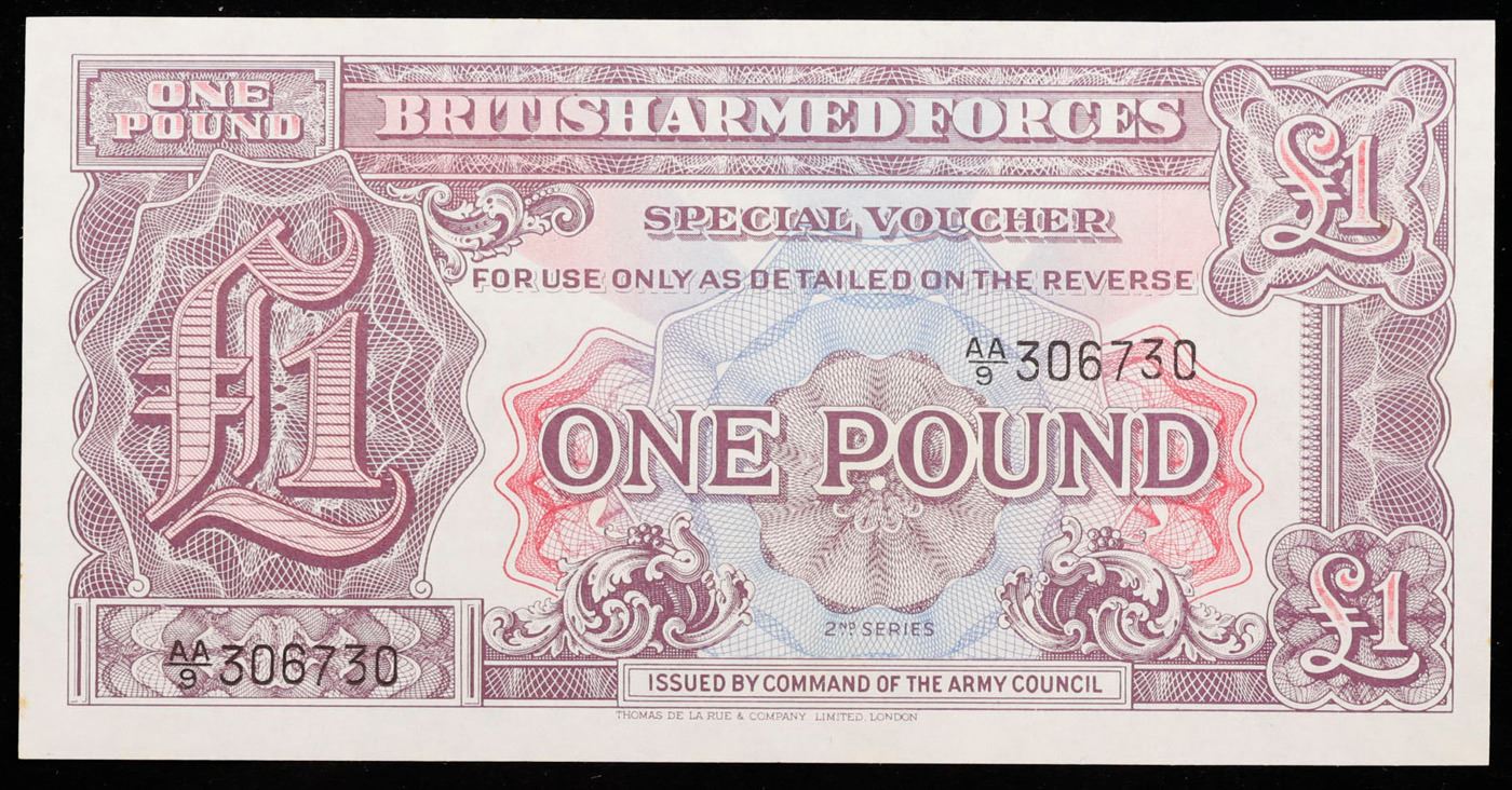 Set of 2 Concecutive 1950 Great Britain 1 Pound Military Payment Note P: M22A Grades CU