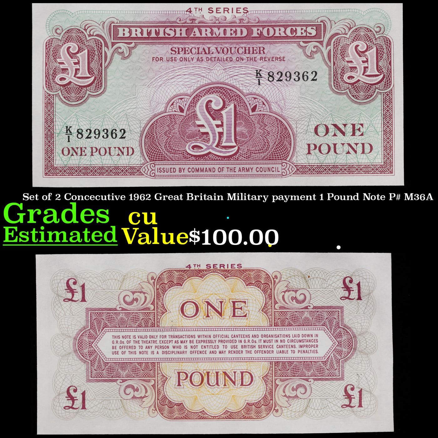 Set of 2 Concecutive 1962 Great Britain Military payment 1 Pound Note P# M36A Grades CU