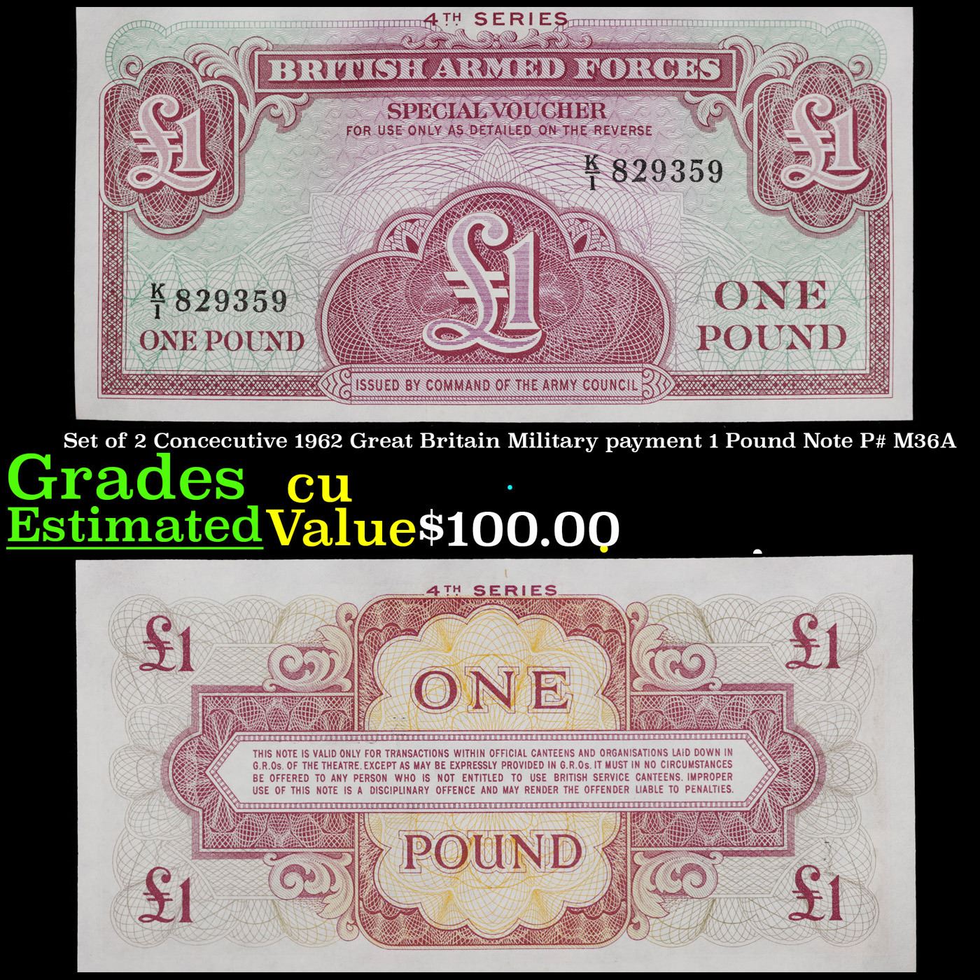 Set of 2 Concecutive 1962 Great Britain Military payment 1 Pound Note P# M36A Grades CU.