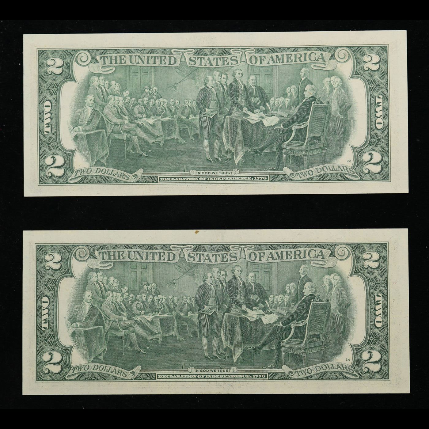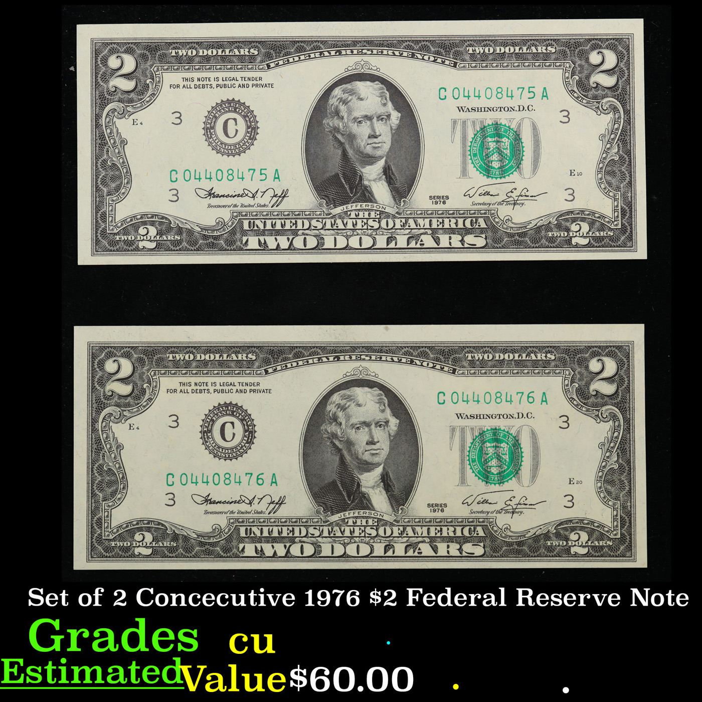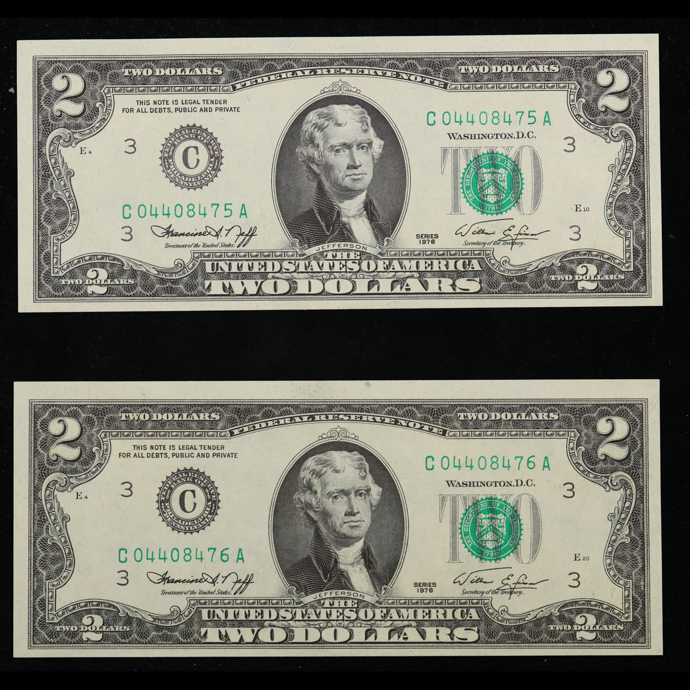 Set of 2 Concecutive 1976 $2 Federal Reserve Note Grades CU.