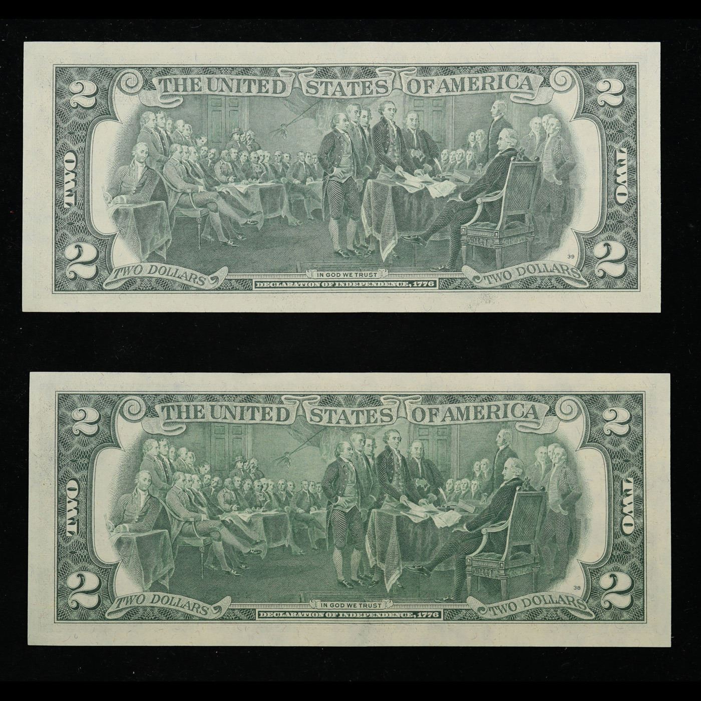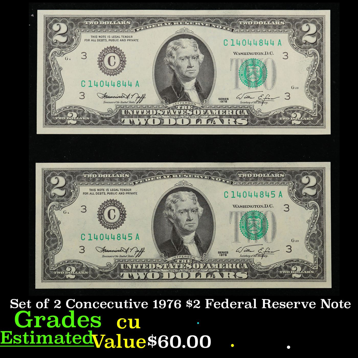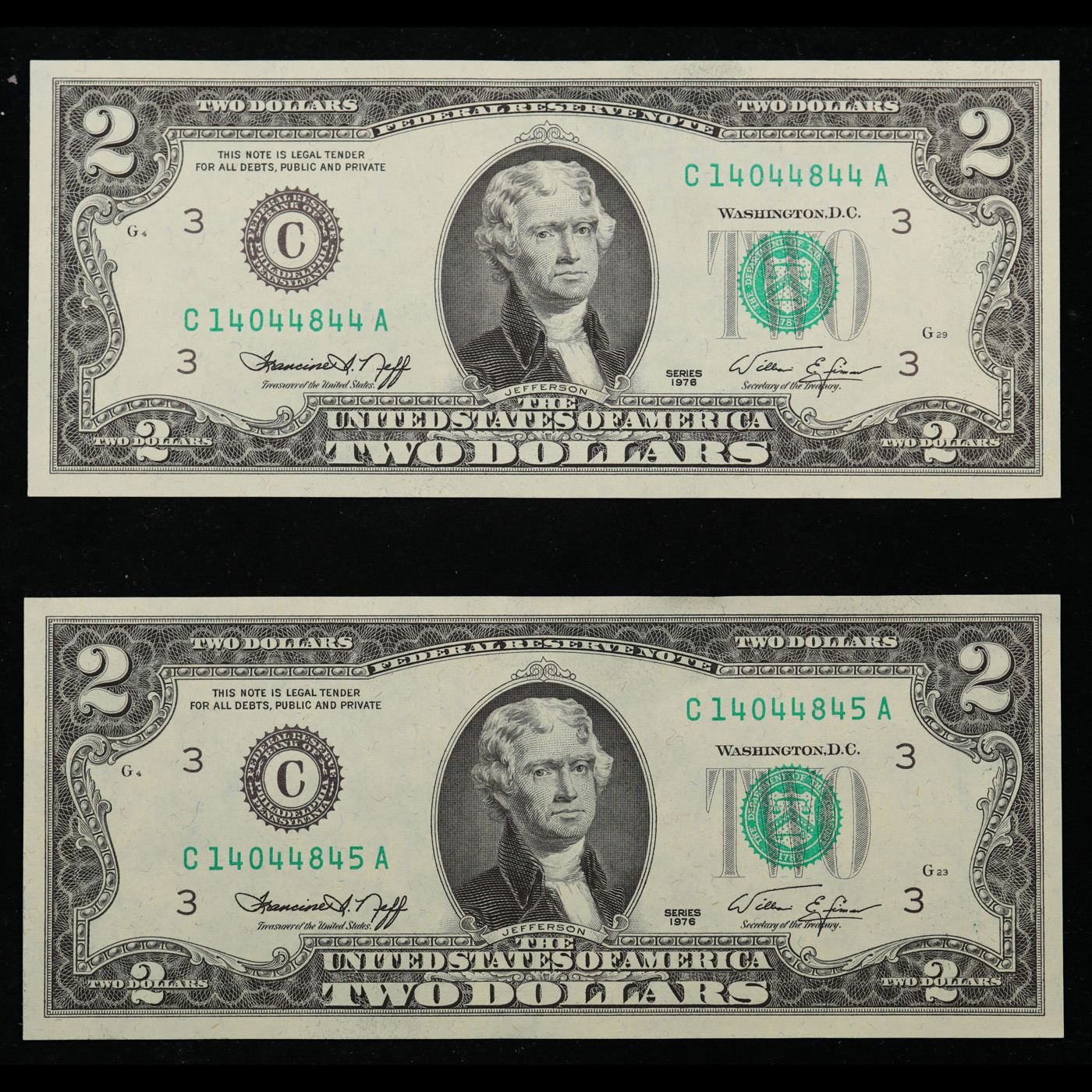 Set of 2 Concecutive 1976 $2 Federal Reserve Note Grades CU.