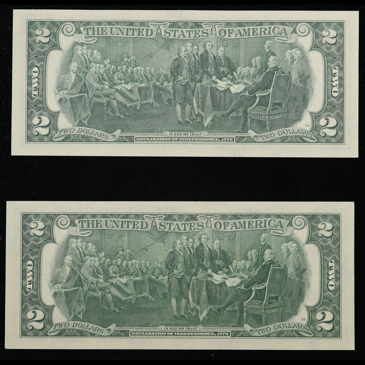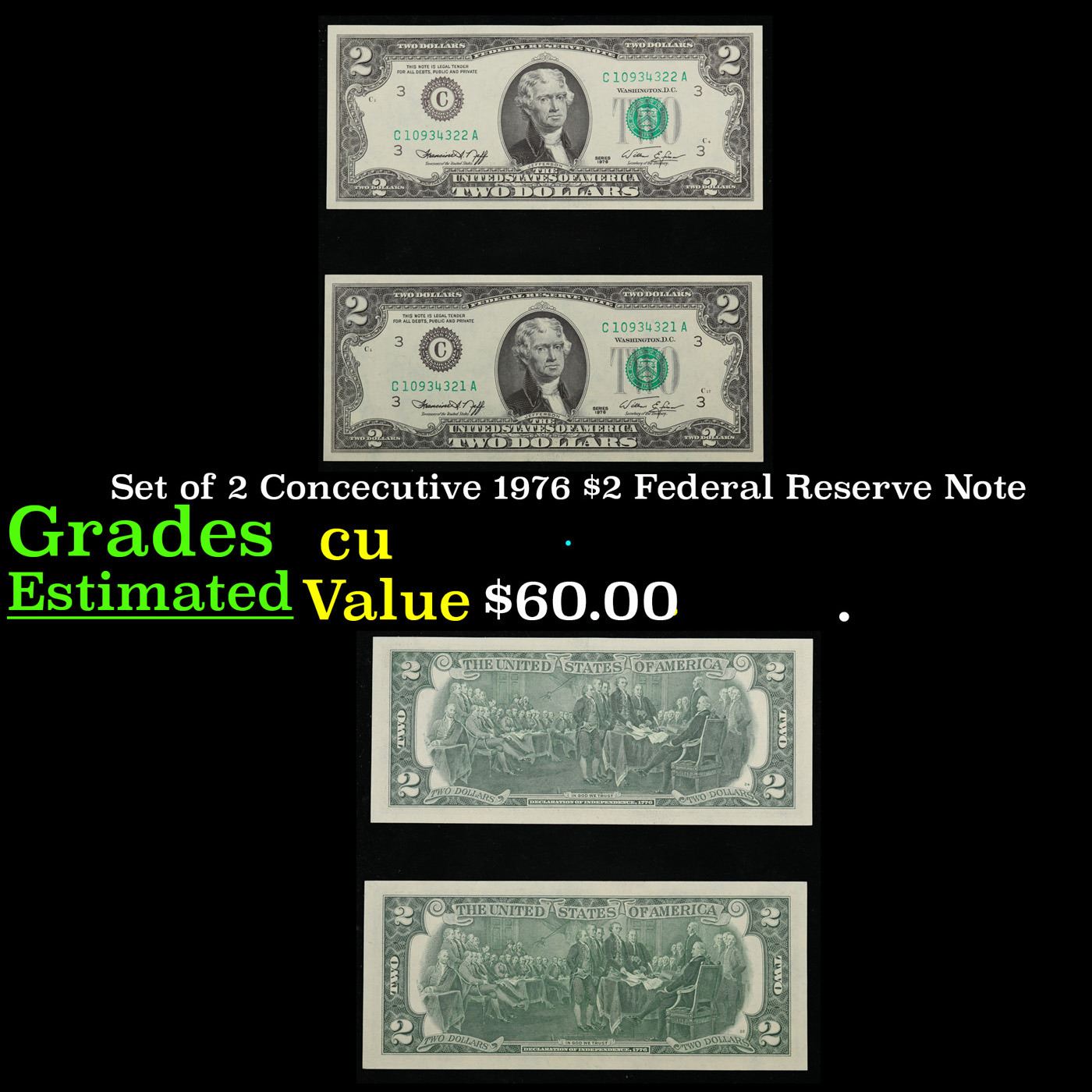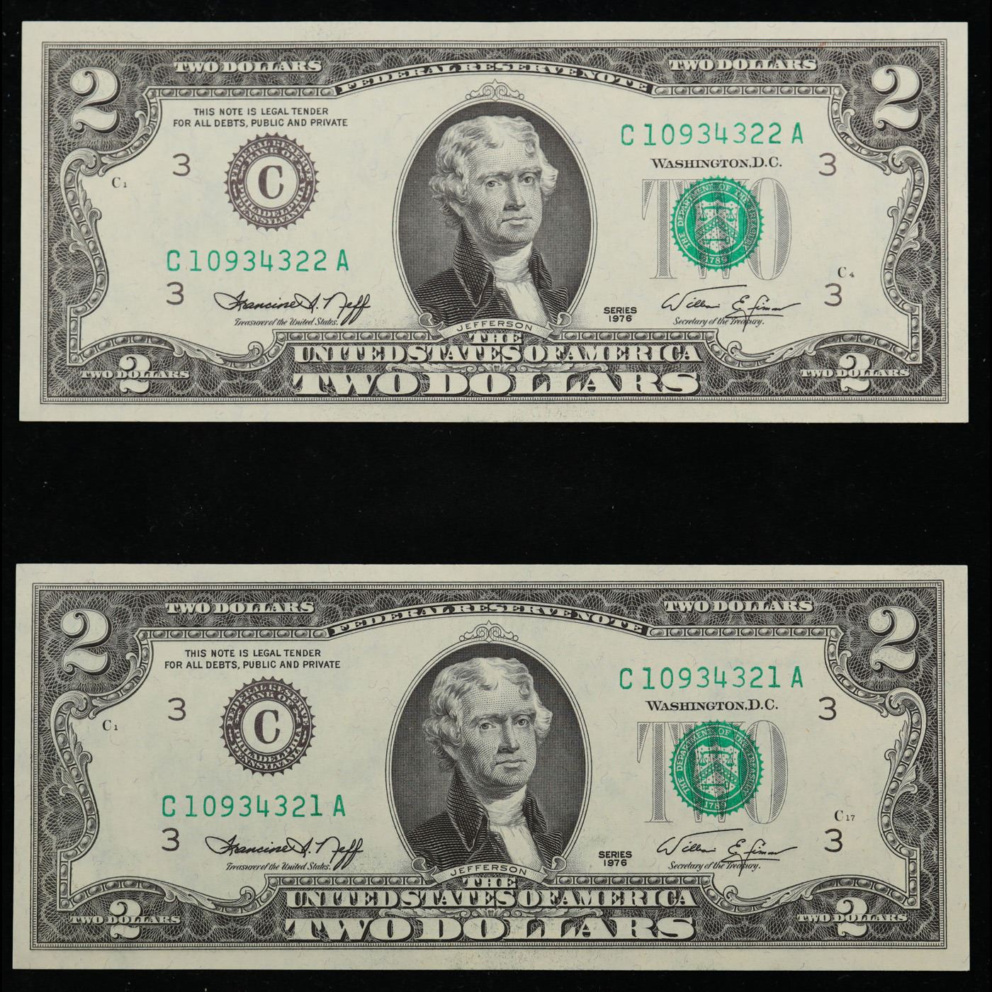 Set of 2 Concecutive 1976 $2 Federal Reserve Note Grades CU.