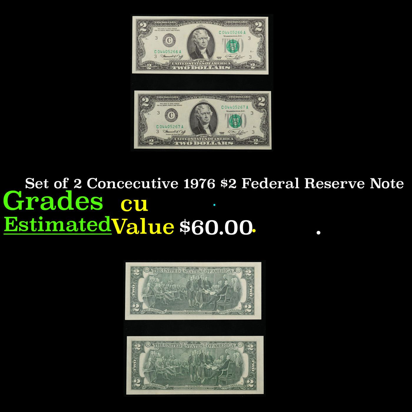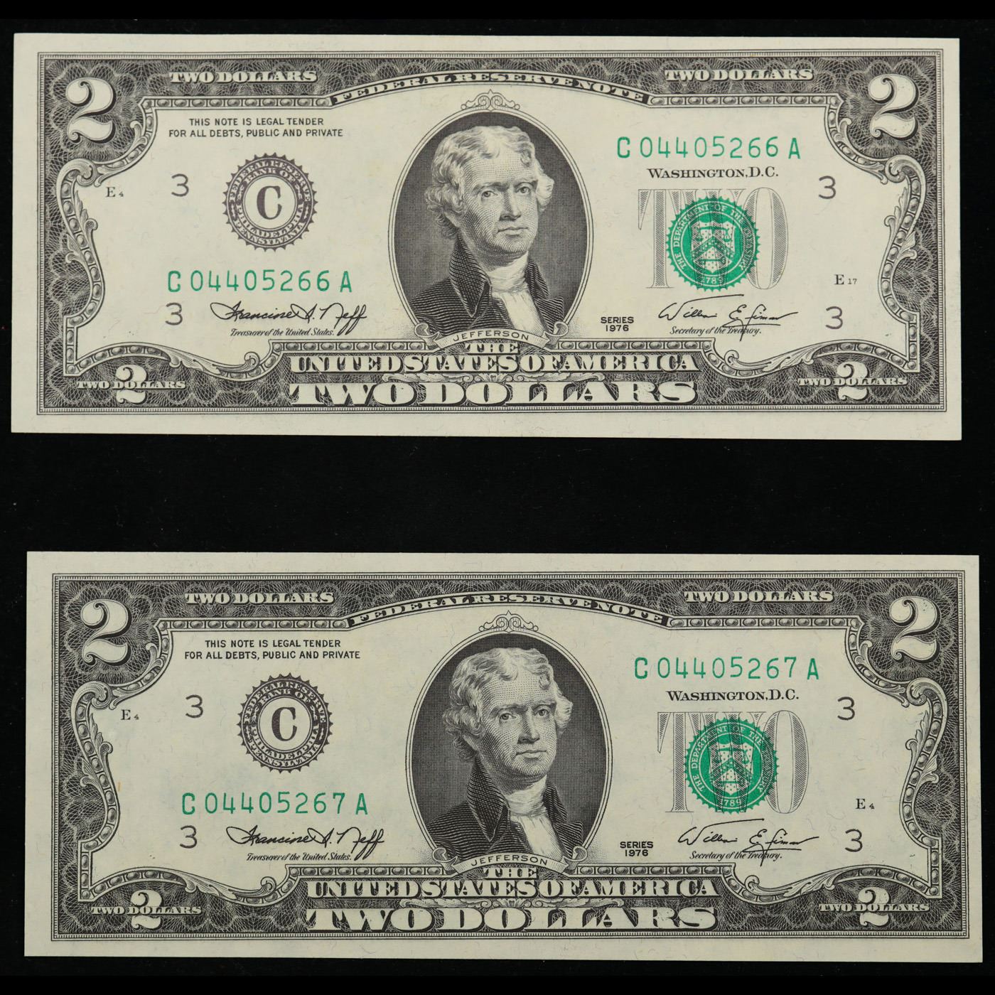 Set of 2 Concecutive 1976 $2 Federal Reserve Note Grades CU.