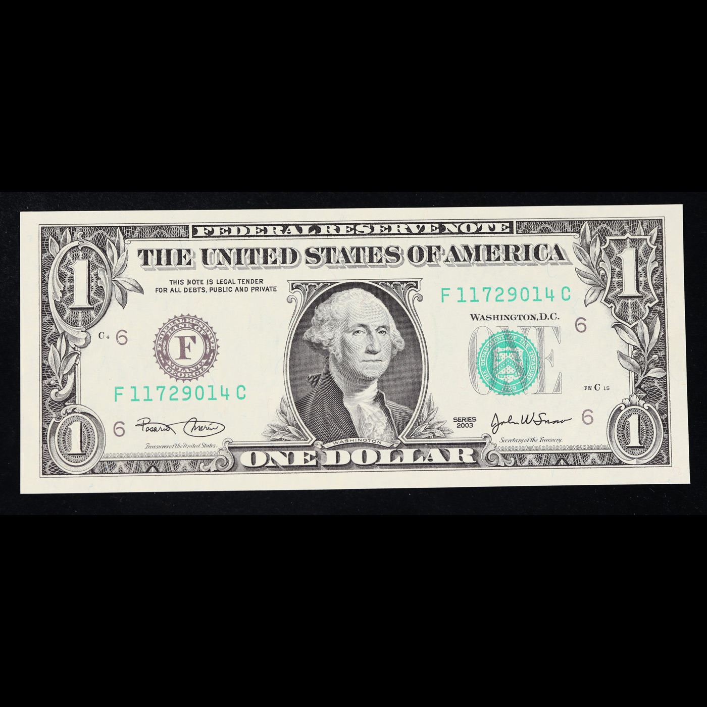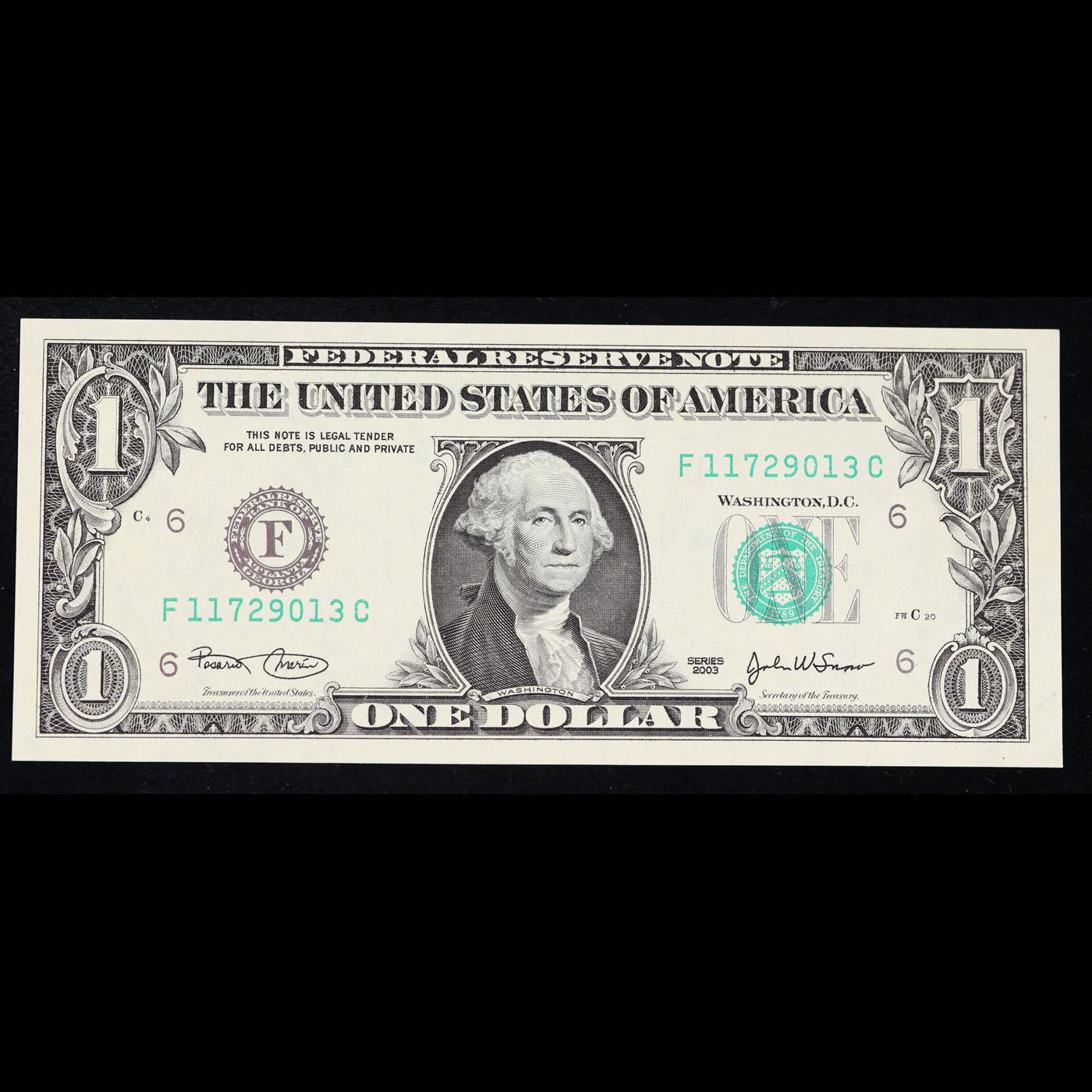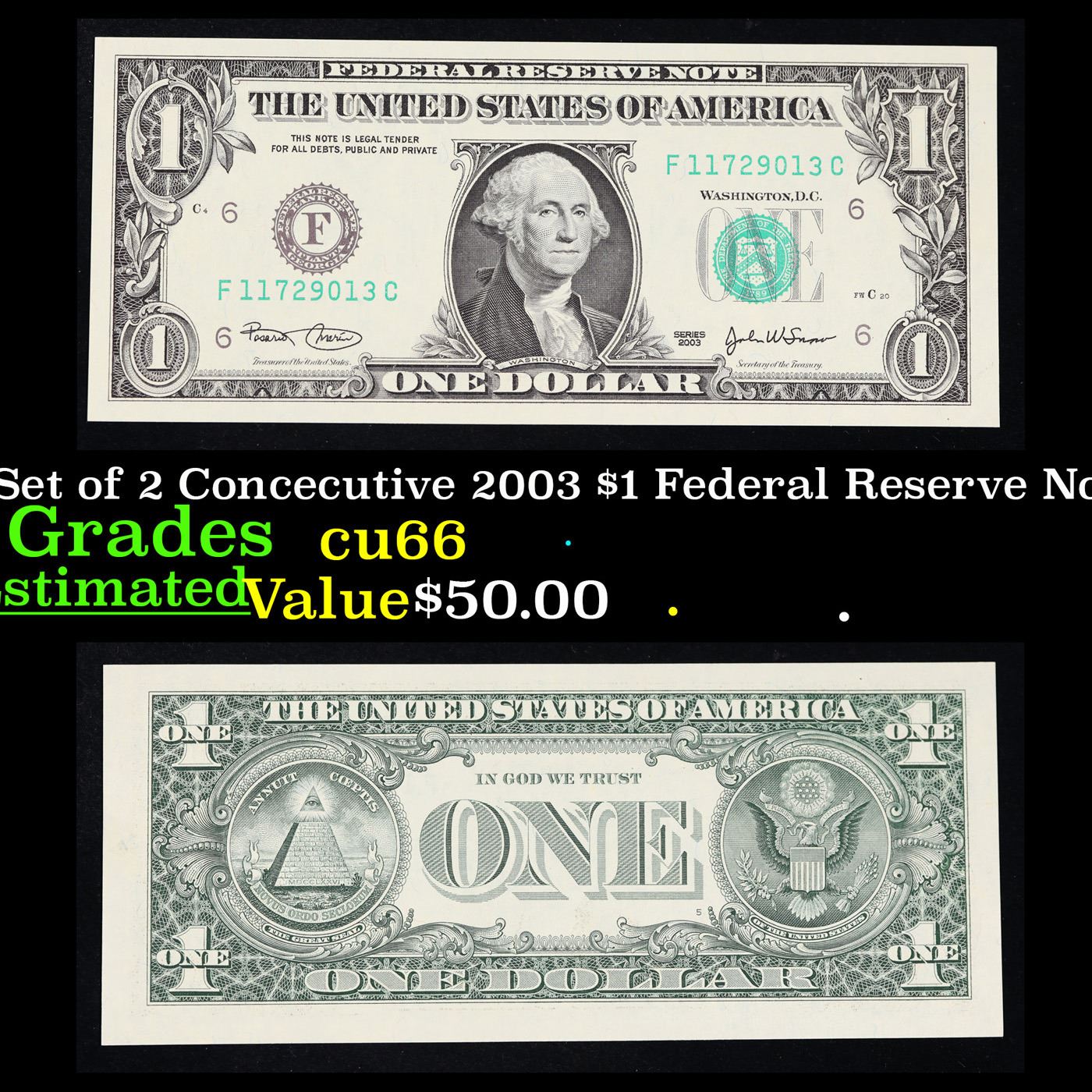 Set of 2 Concecutive 2003 $1 Federal Reserve Note Grades Gem+ CU.