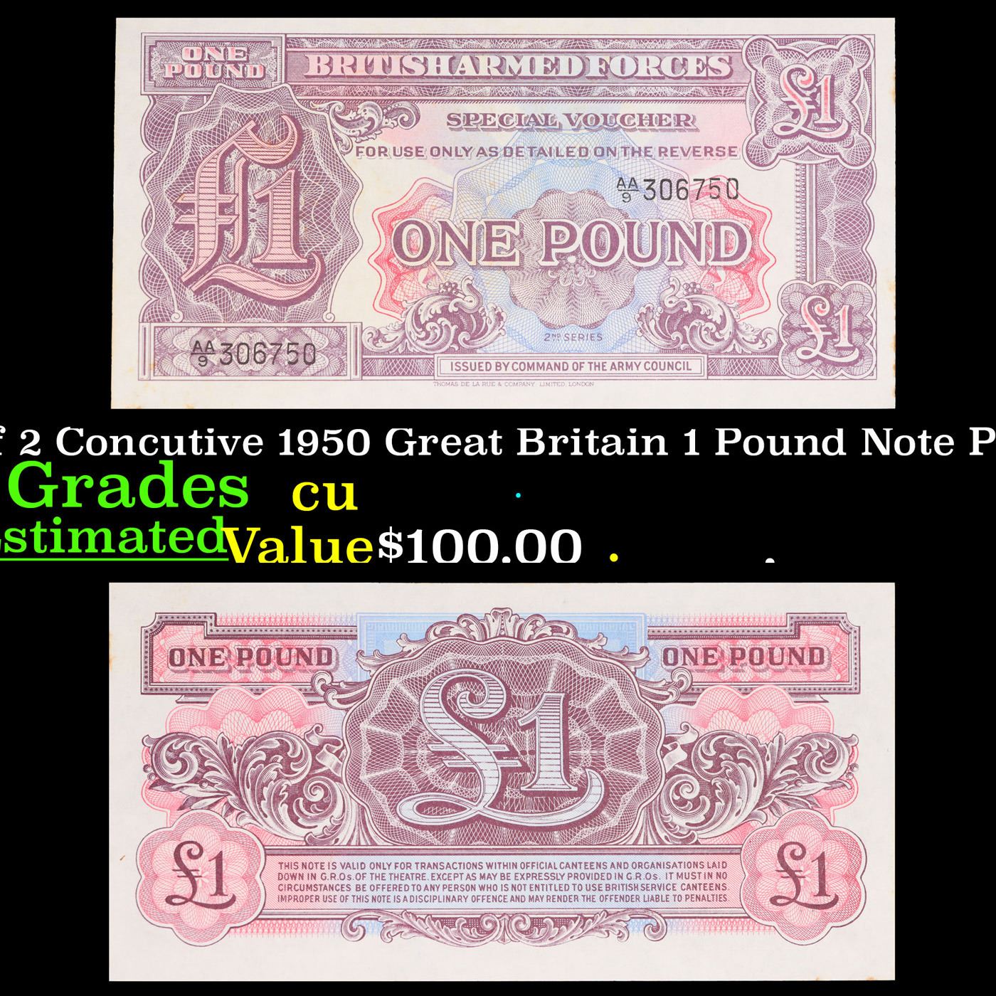 Set of 2 Concutive 1950 Great Britain 1 Pound Note P# M22A Grades CU.