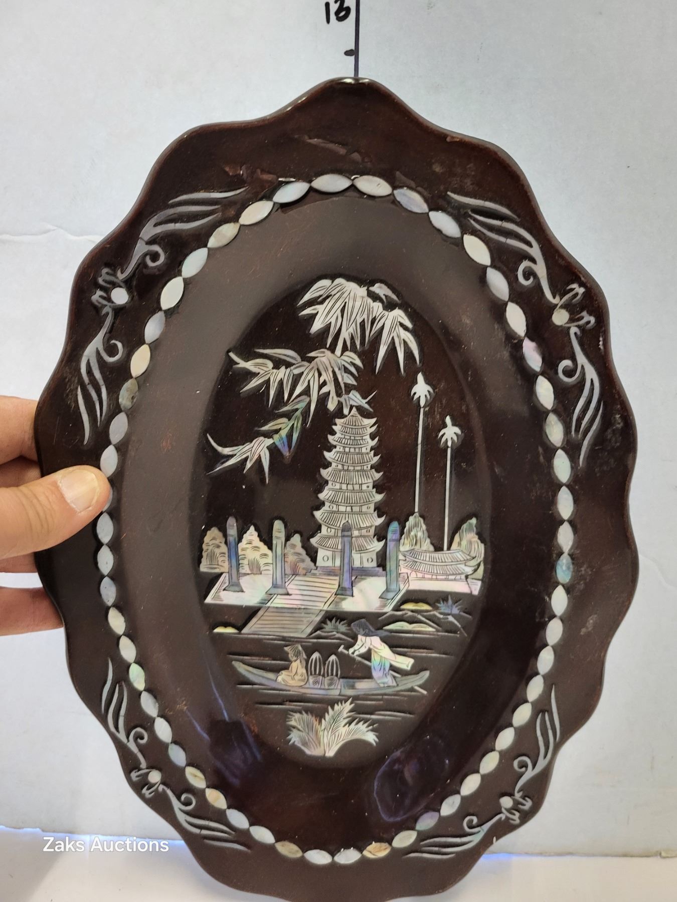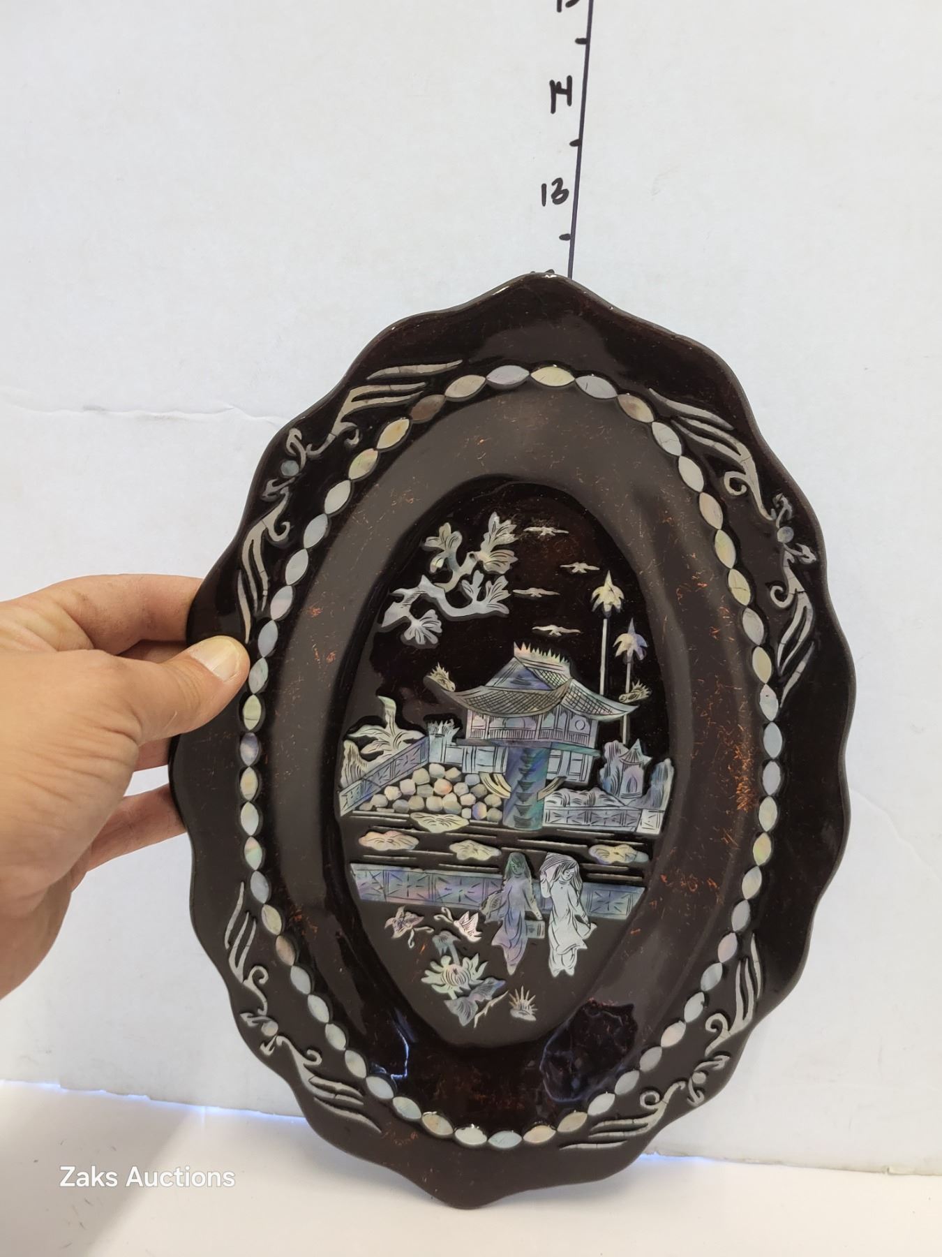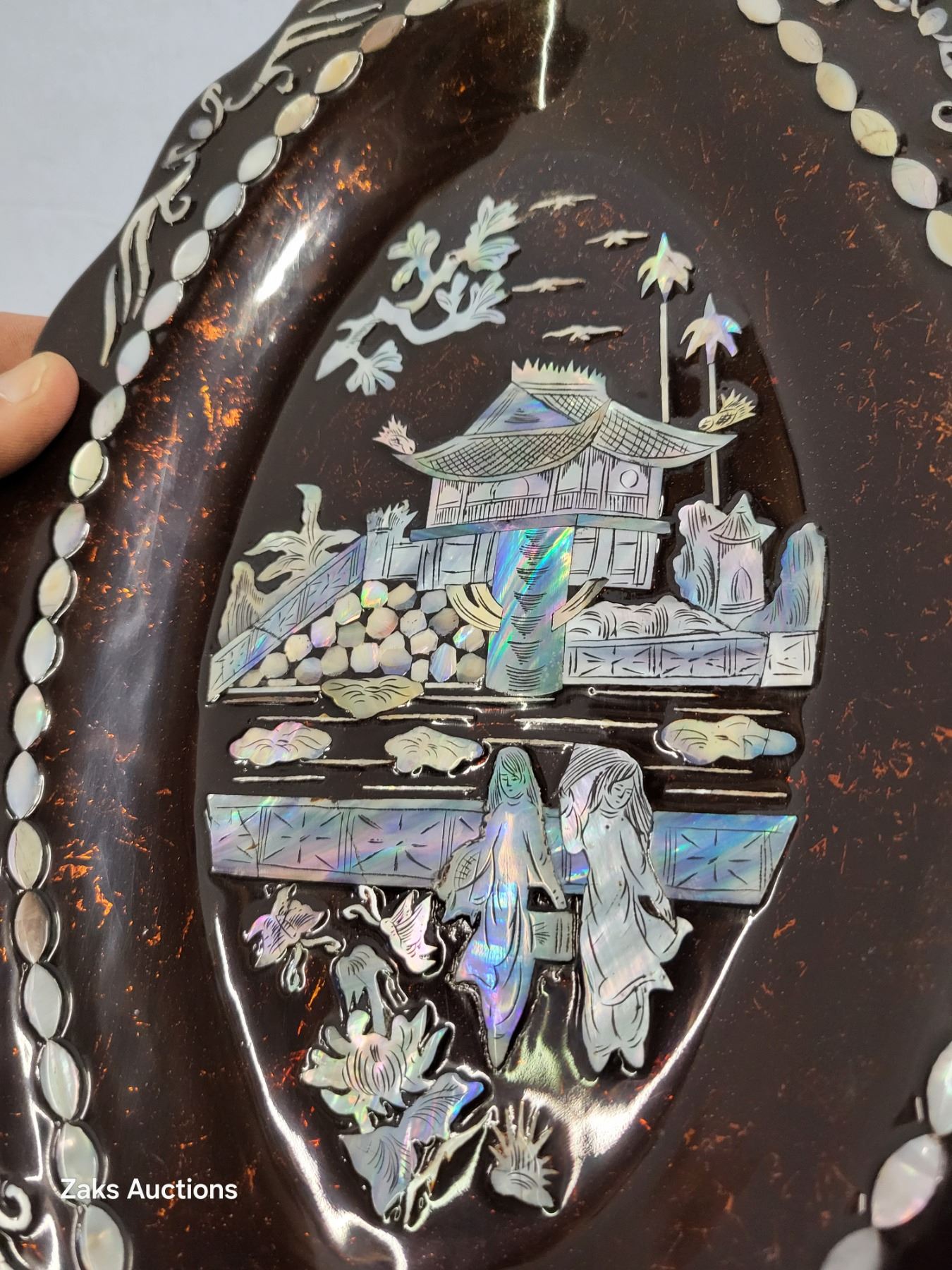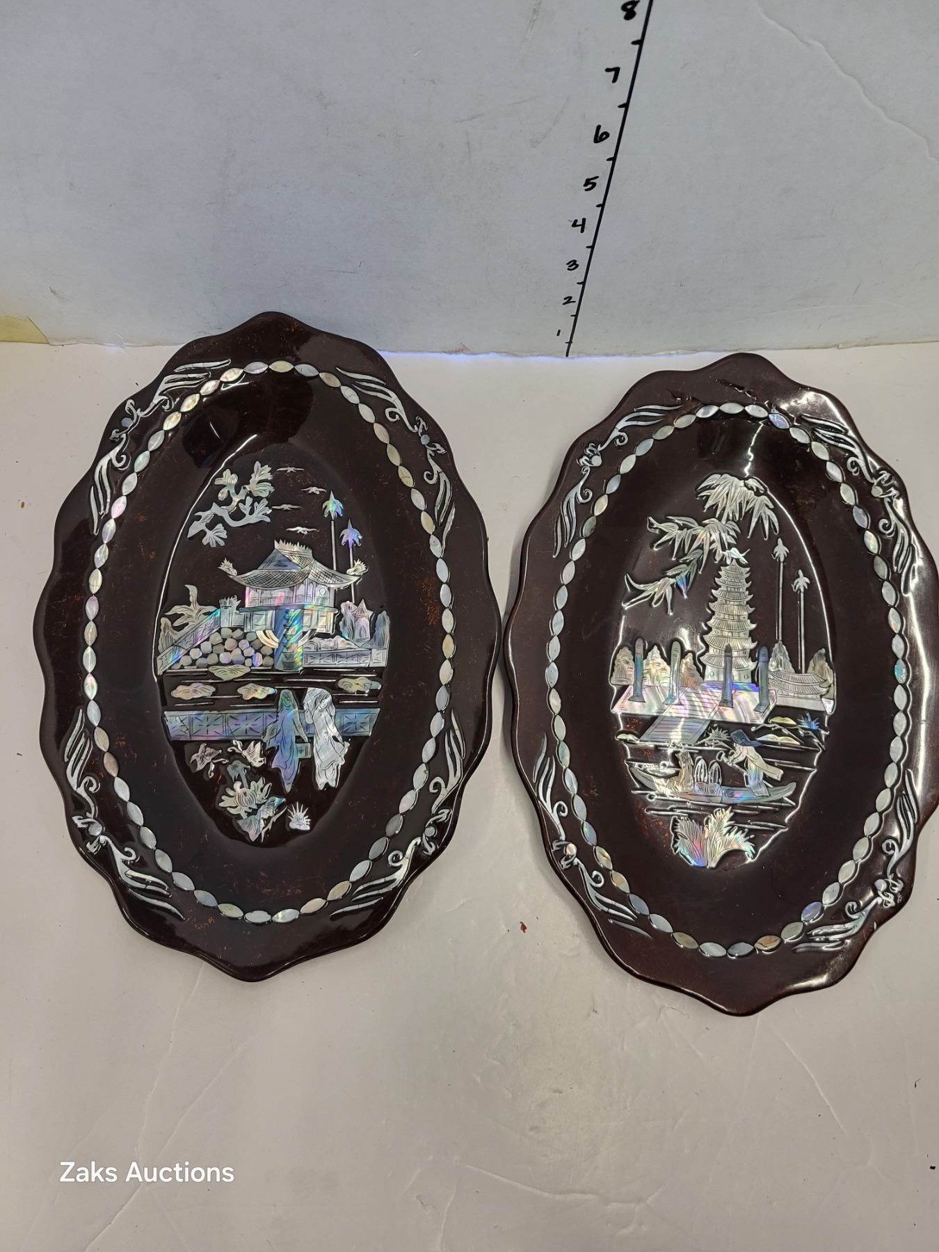 Set of 2 Decorative Mother of Pearl Inlay Trays (background seems to have a gold vein randomly running through them)