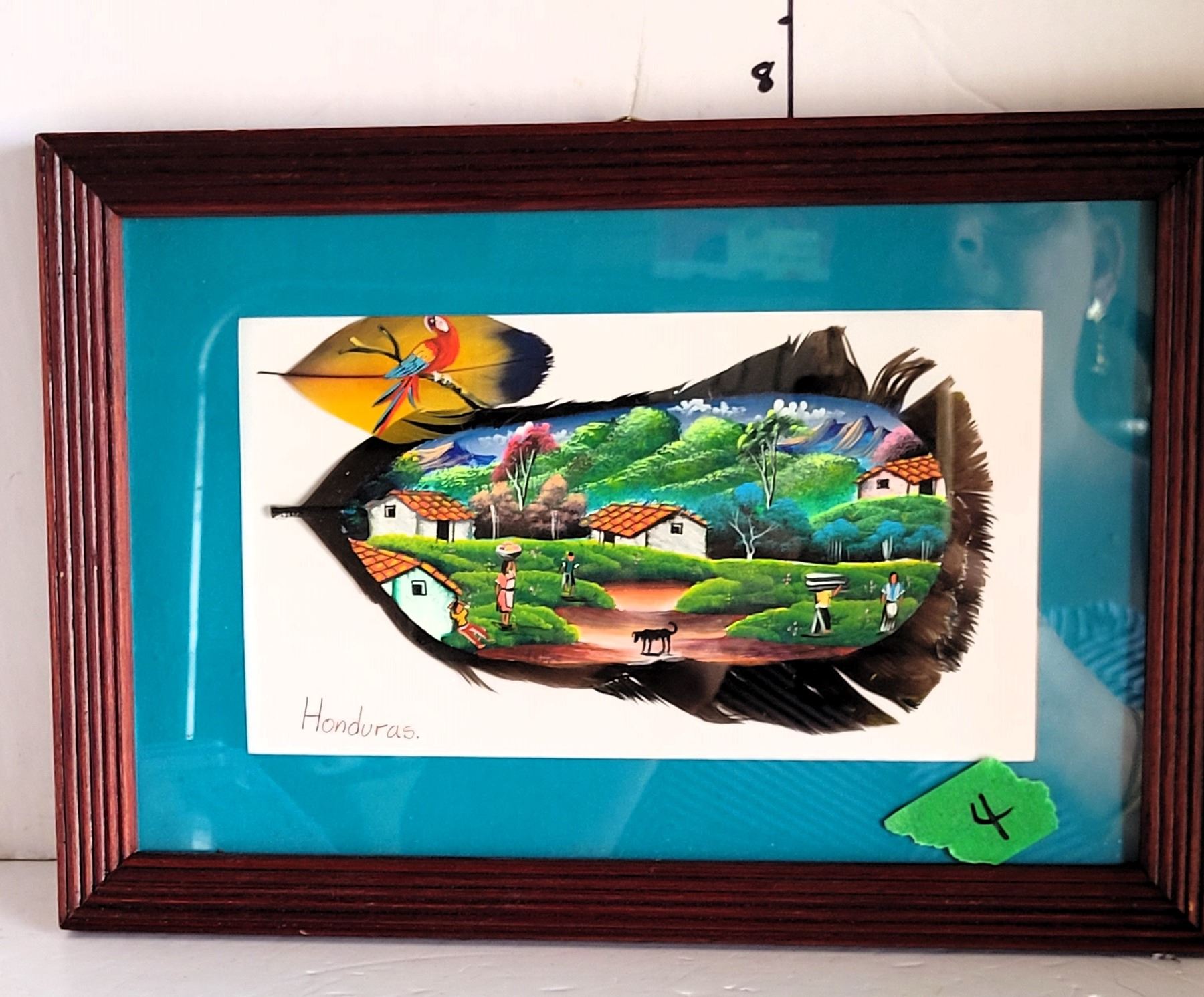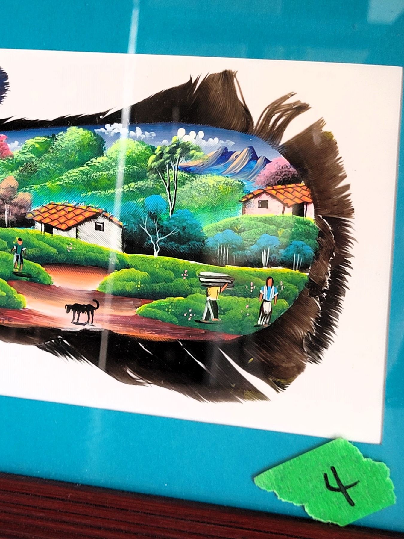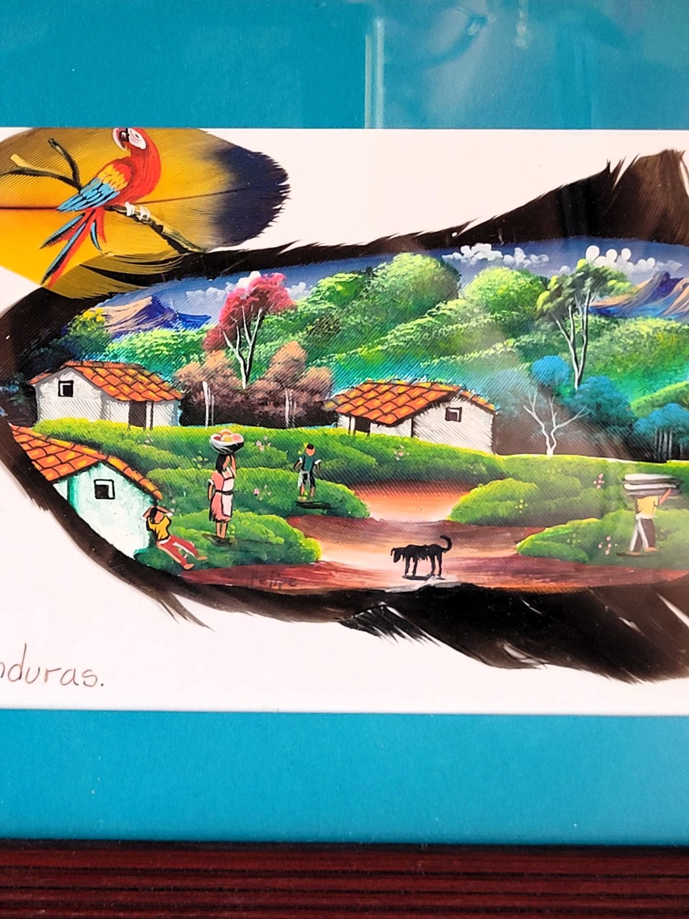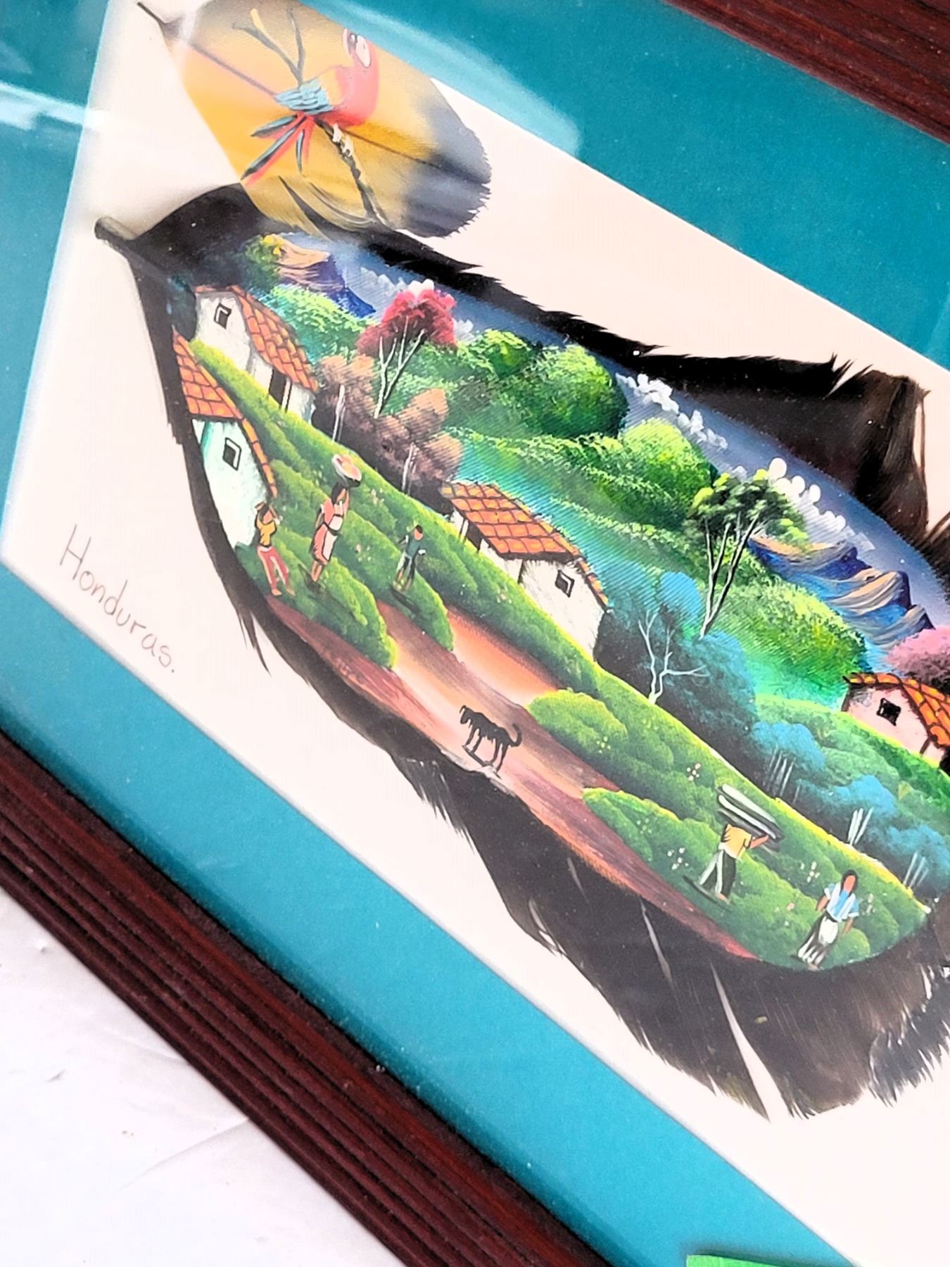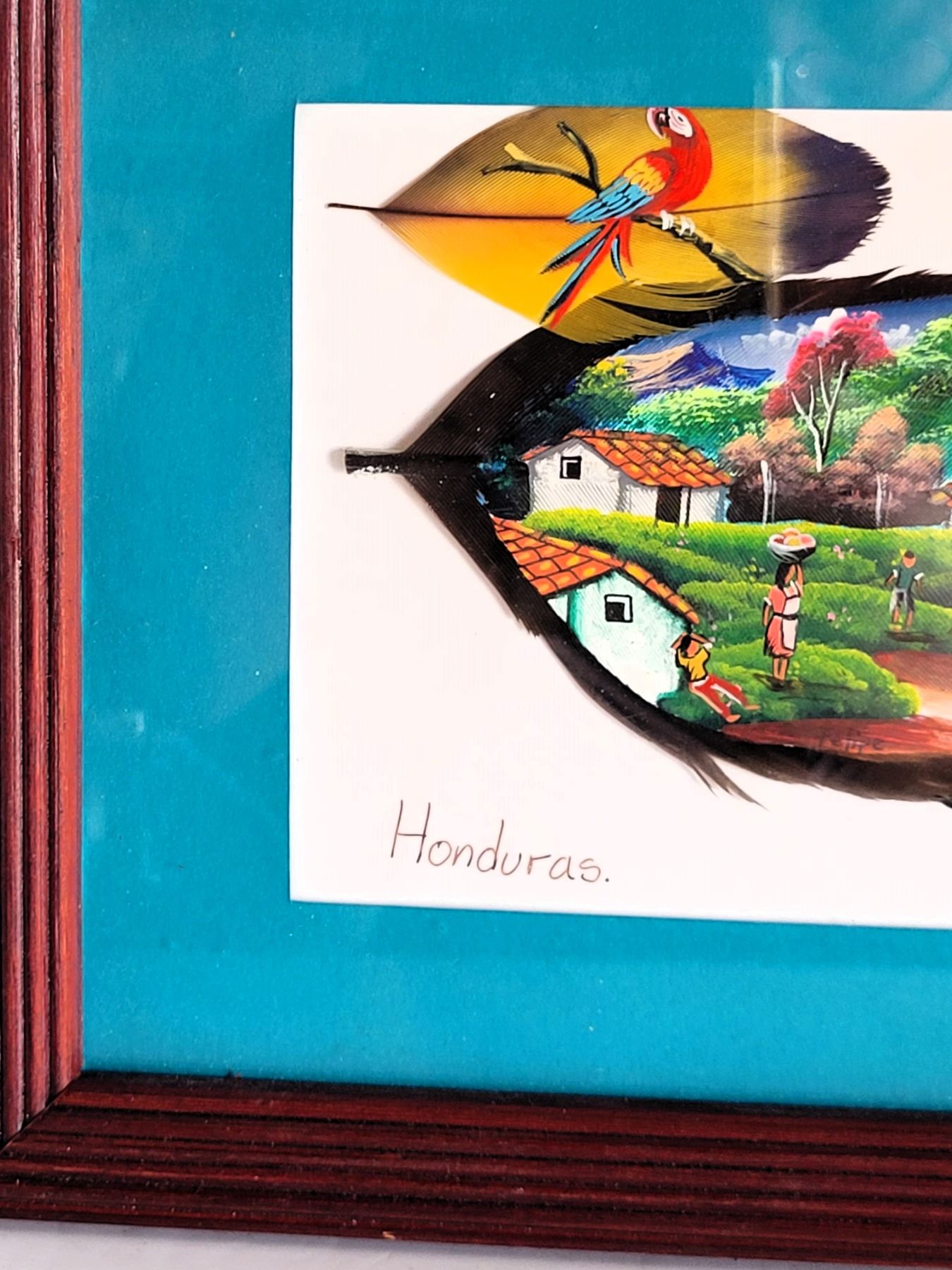 Set of 2 Hantpainted Feathers (Framed) from the Honuras