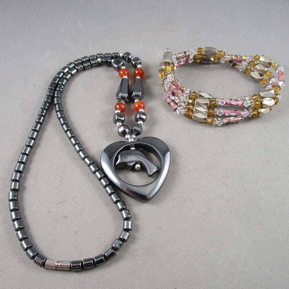 Set of 2 Hematite Necklace & Bracelet