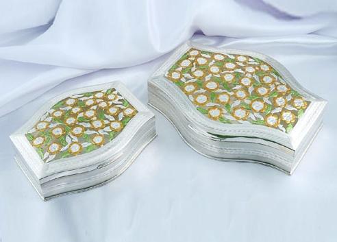 Set of 2 Jewelry Box Multicolor Flower Enamel on Sterling Silver Exclusive - Hand Made Heavily Decorated weighs 51.44 Troy Oz (1600 Grams) Approximate "Timeless Treasure" by Shakuntalam Silvercraft.