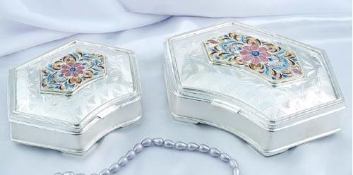 Set of 2 Jewelry Box Multicolor Flower Enamel on Sterling Silver Exclusive - Hand Made Heavily Decorated weighs 57.87 Troy Oz (1800 Grams) Approximate "Timeless Treasure" by Shakuntalam Silvercraft.