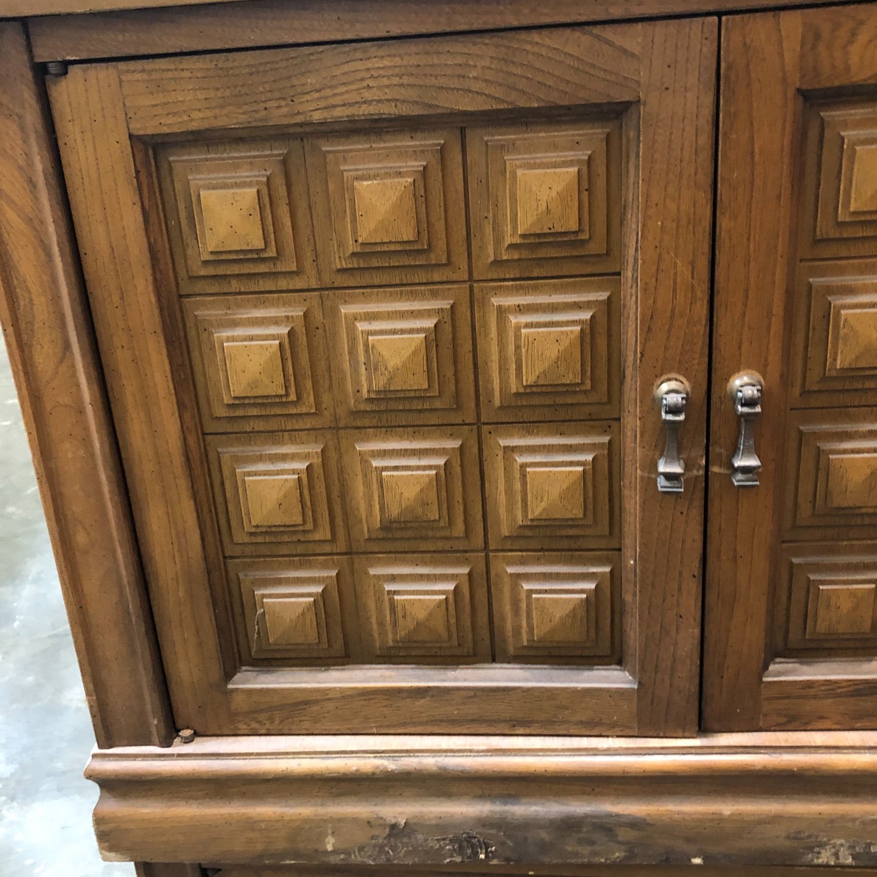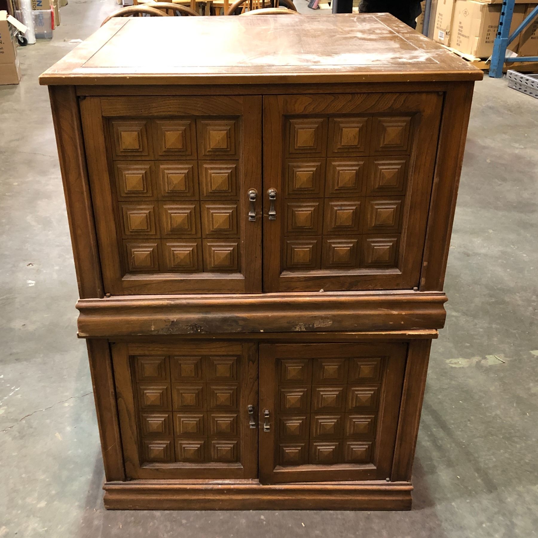 Set of 2 Mid century 2-door cabinets w/ misc accessories- approx 28 squared x 19 1/2" H