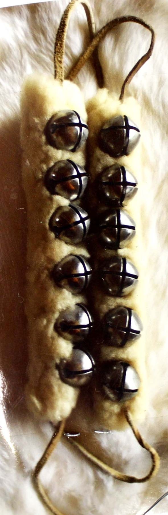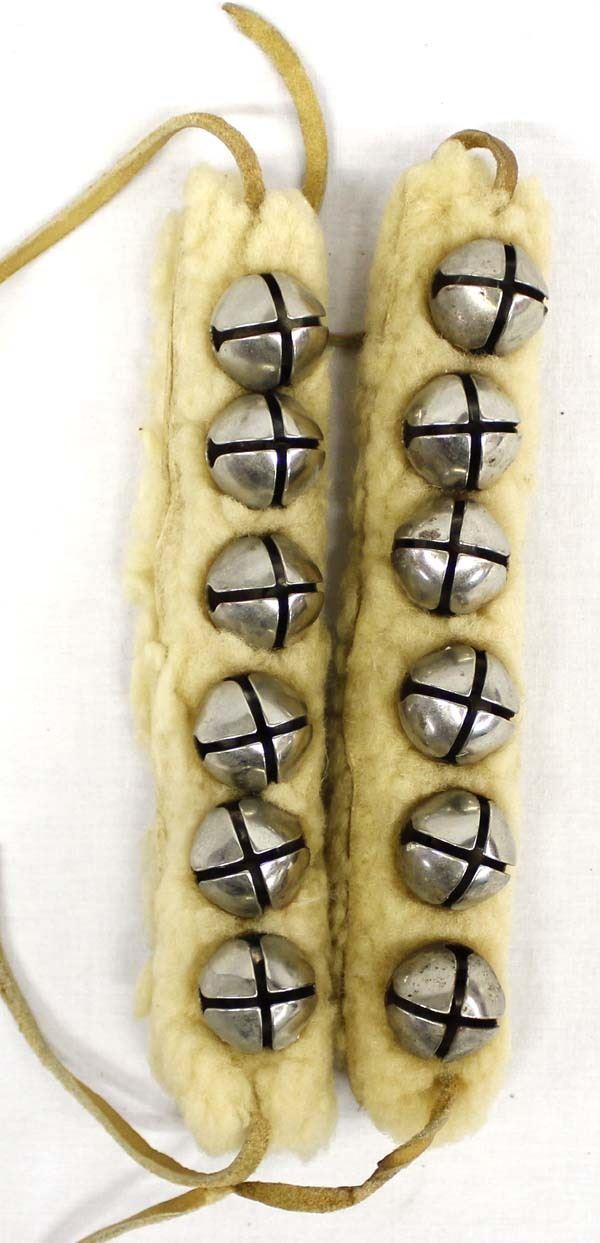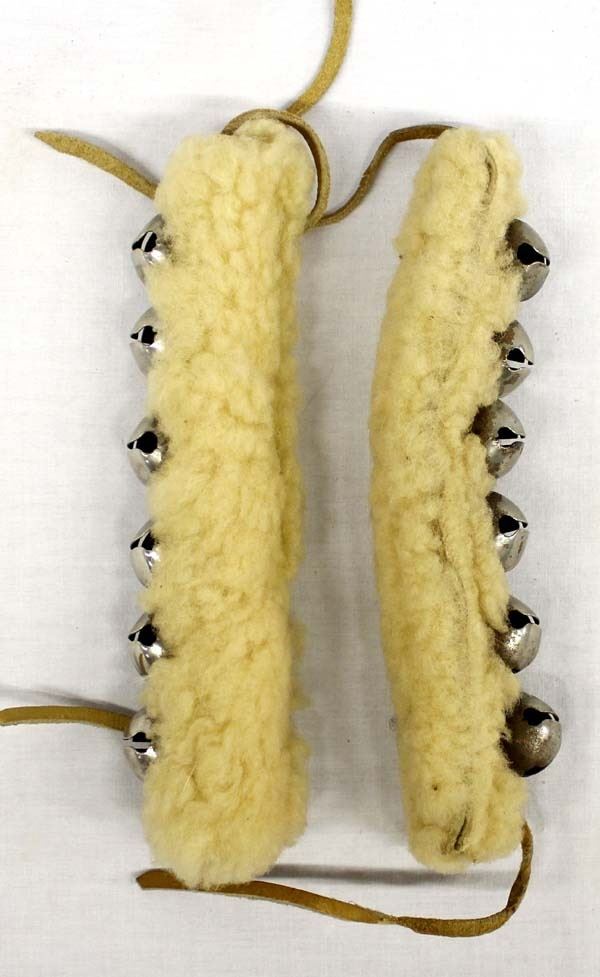 Set of 2 Native American Navajo Wool Ankle Dance Bells, measure 1'' x 7'', leather ties