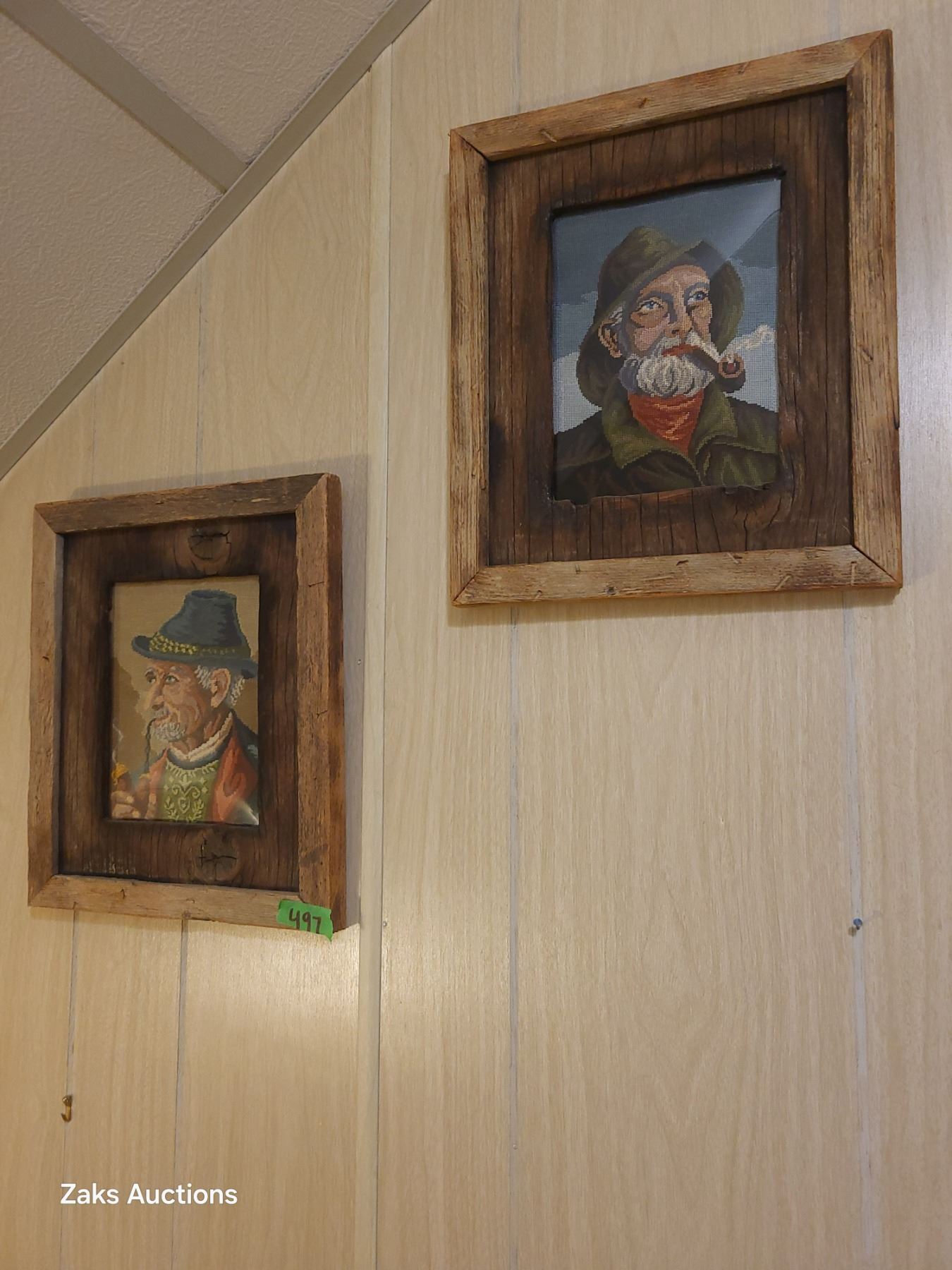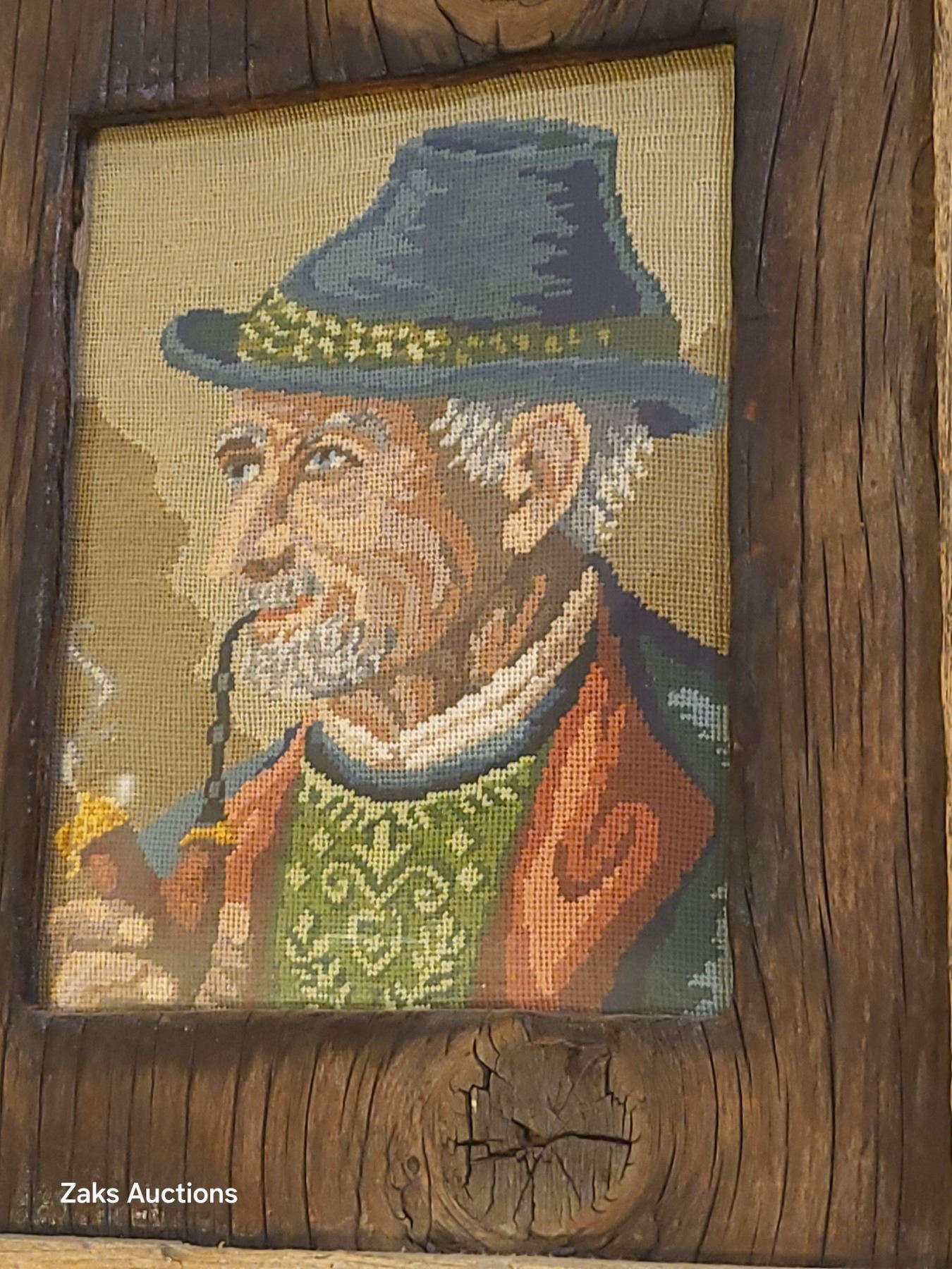 Set of 2 Old Men Needlepoint Picures