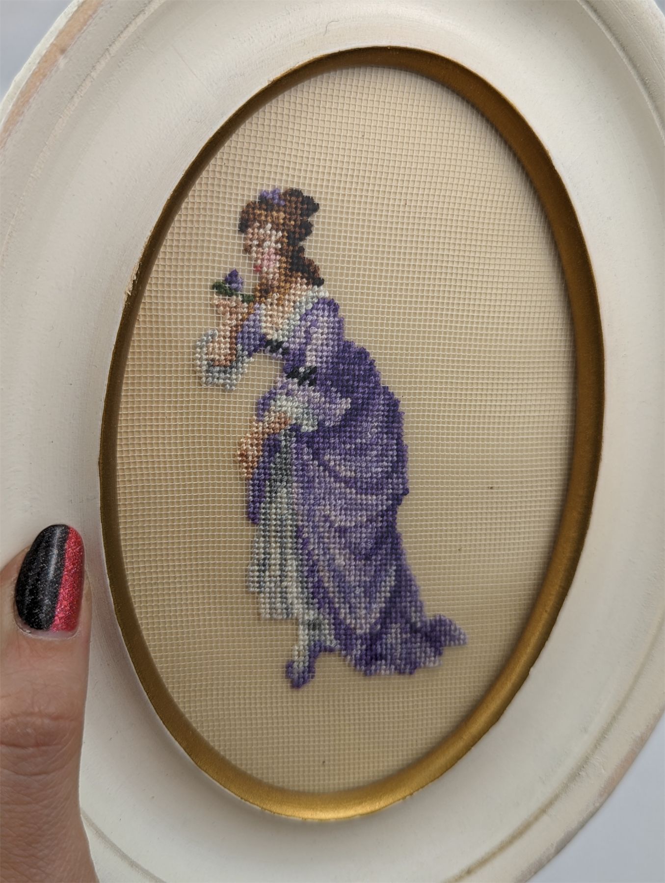 Set of 2 Petite Point Pictures in Oval Frames 8  x 6