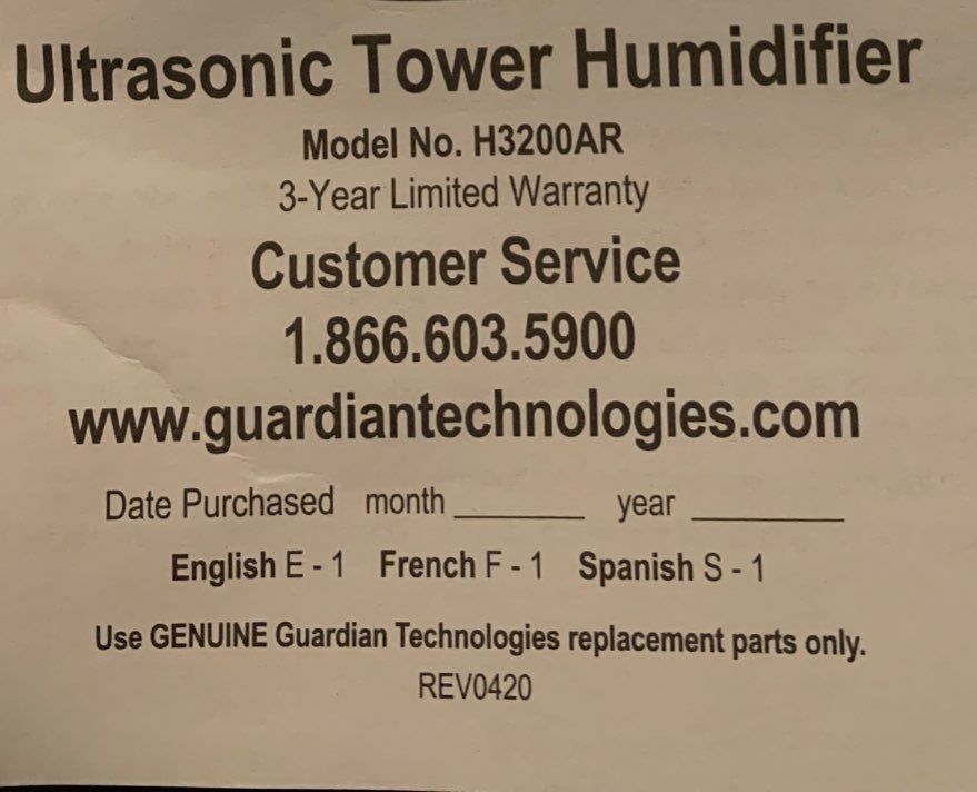 Set of 2 Pure Guardian Ultrasonic Tower Humidifiers Model No. H3200AR