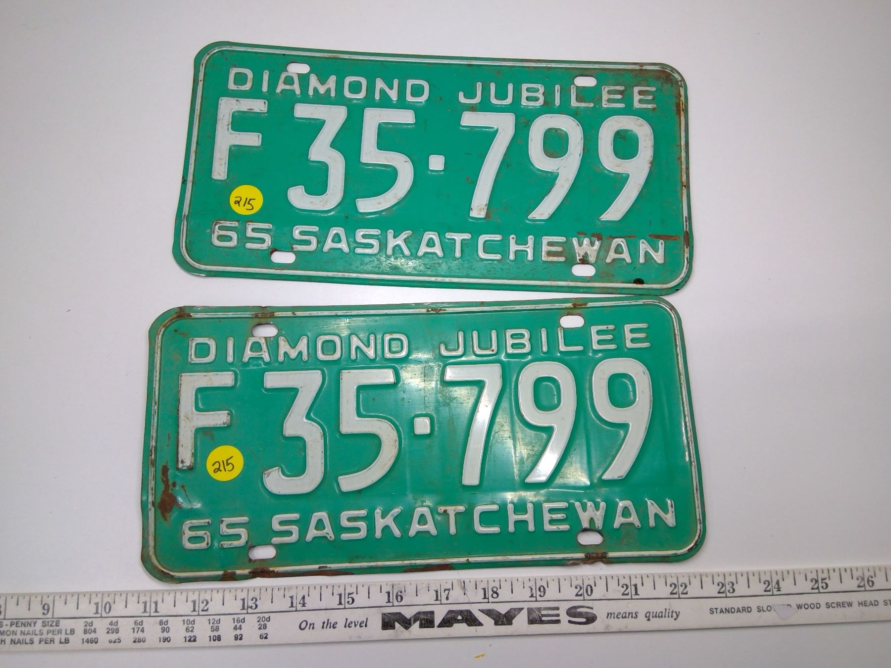 Set of 2 SK License Plates - "Diamond Jubilee" 1965