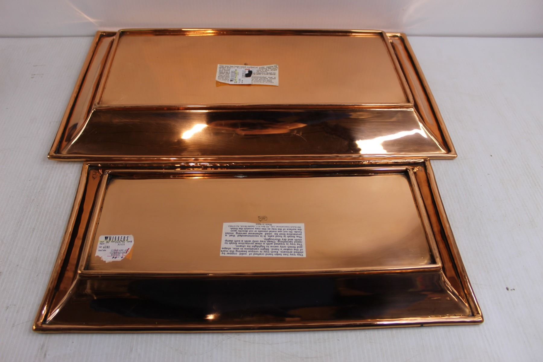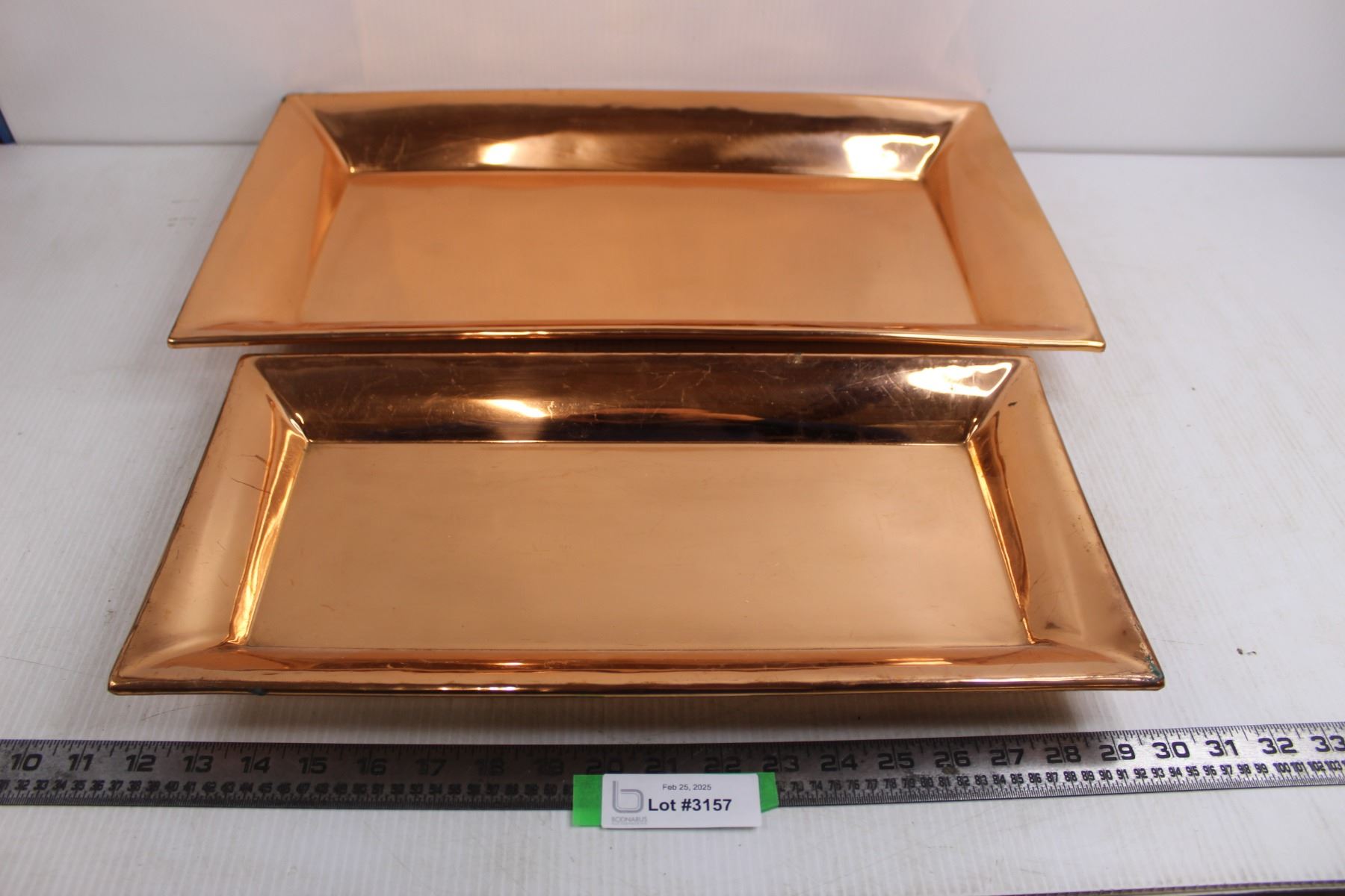 Set of 2 Solid Copper Serving Platters (21.5" x 12" & 17.75" x 9")