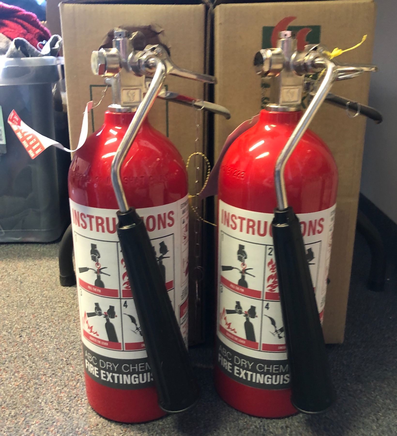 Set of 2 Strikefirst carbon dioxide fire extinguishers - appears to be new
