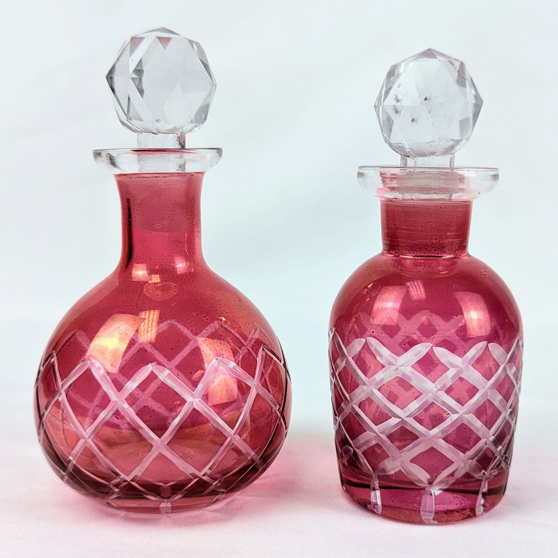 Lovely set of 2 vintage perfume bottles. Exceptional cut glass crystal with crystal top stoppers