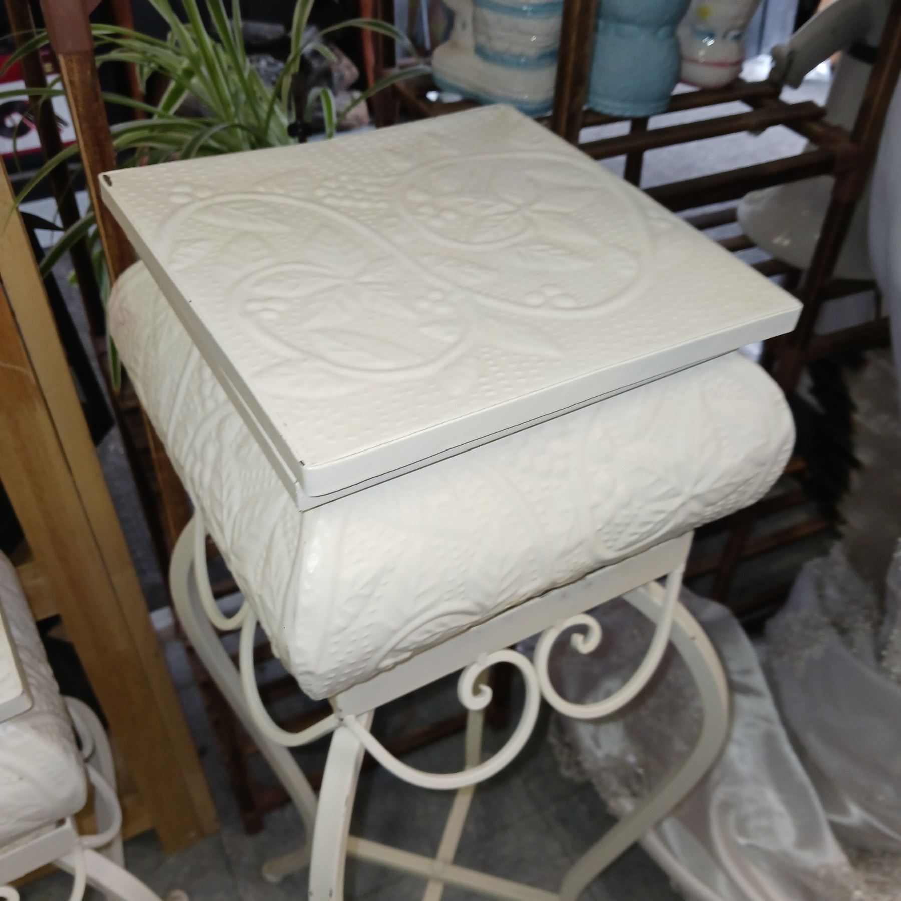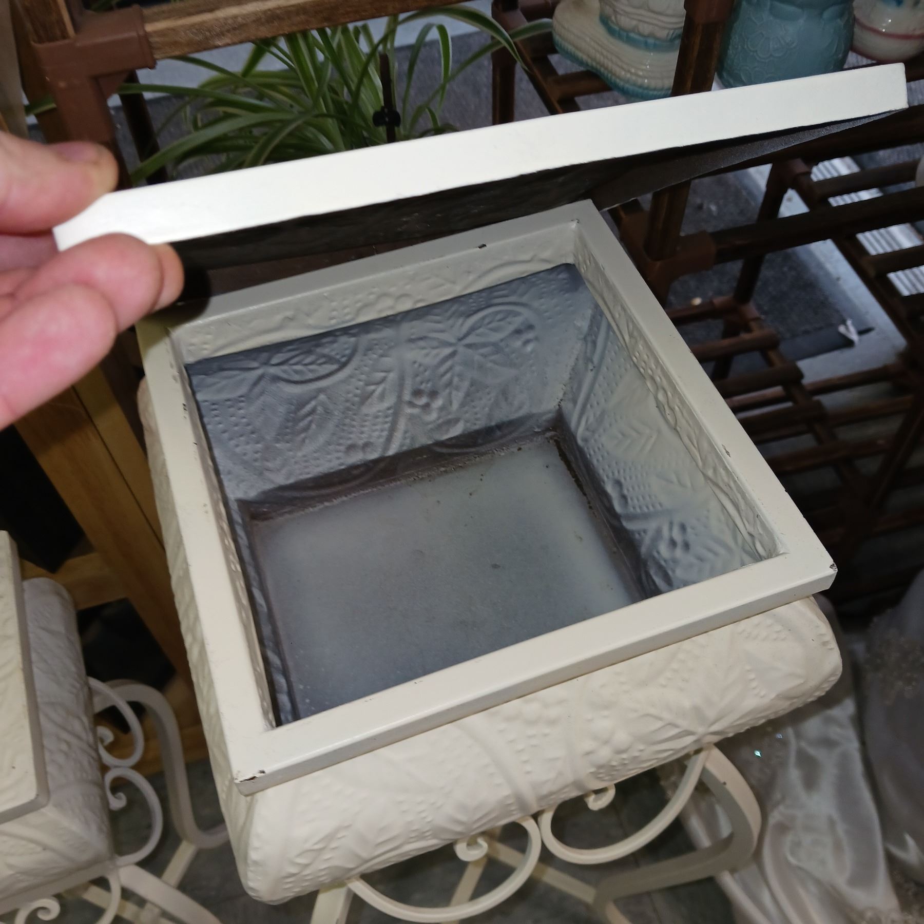 Set of 2 White Metal Hallway Plant Stands with Hideaway Compartments Underneath Lids