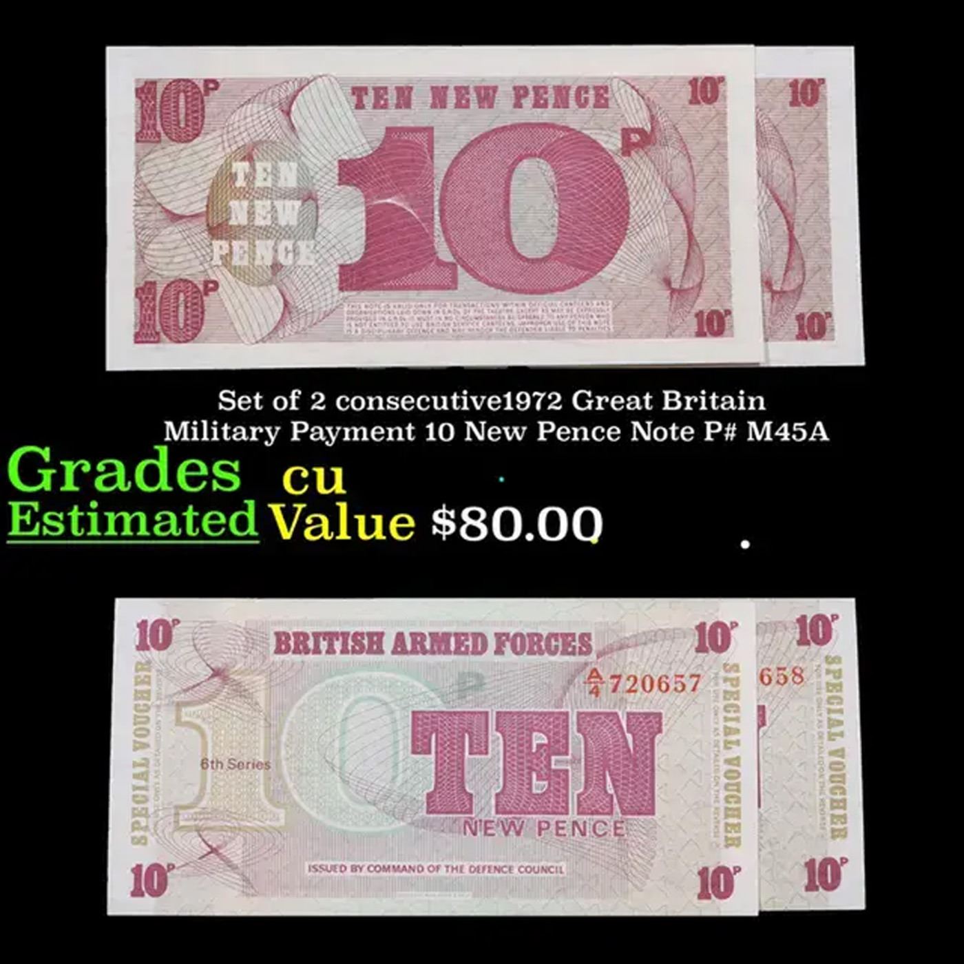Set of 2 consecutive1972 Great Britain Military Payment 10 New Pence Note P# M45A Grades CU