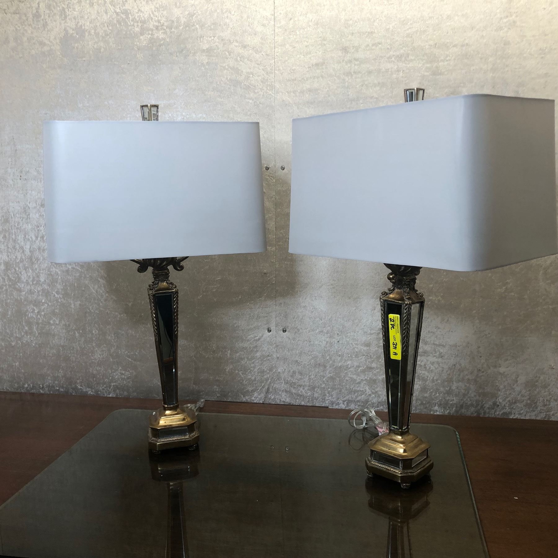 Set of 2 elaborate mirrored table lamps 34in H