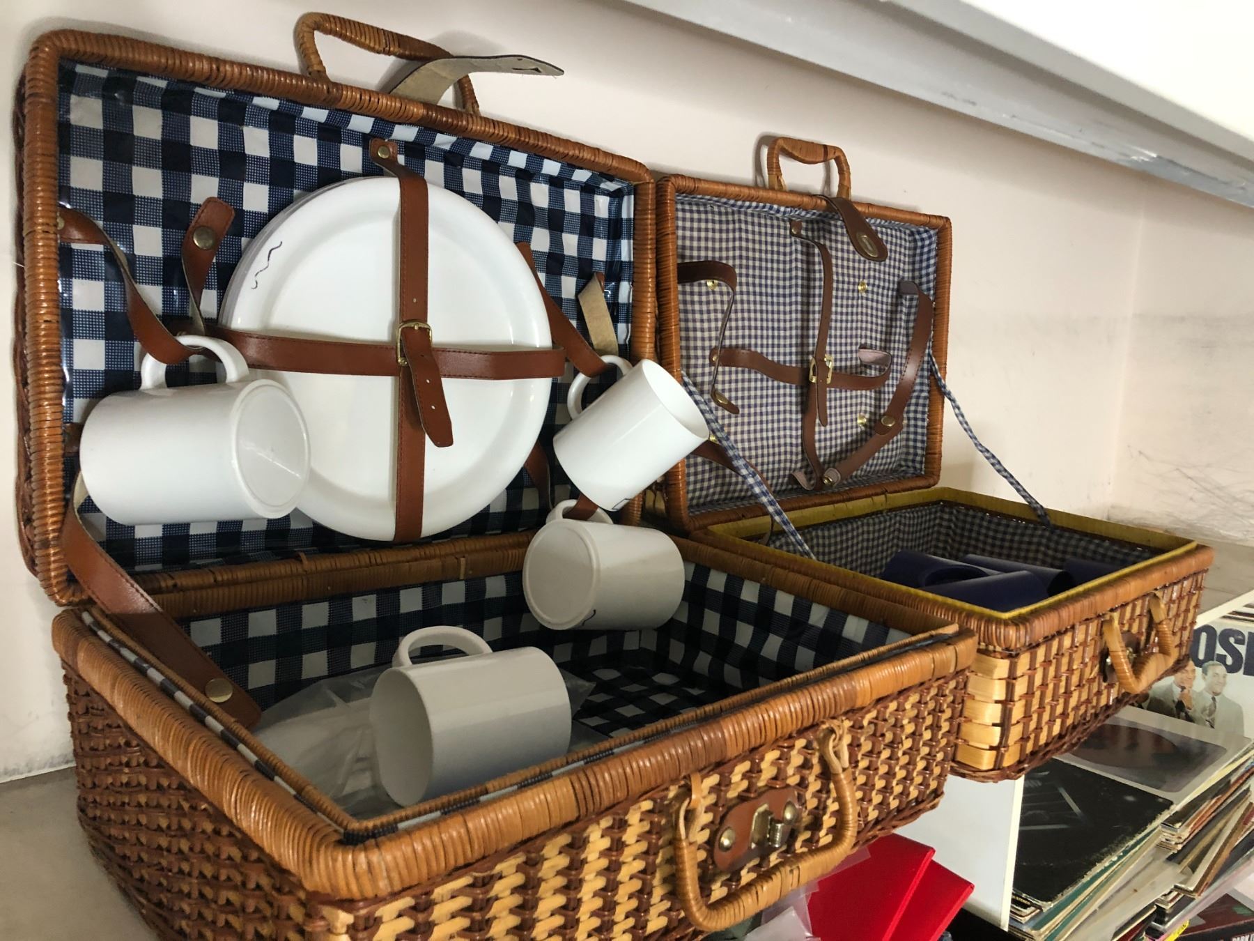 Set of 2 picnic baskets w/ contents