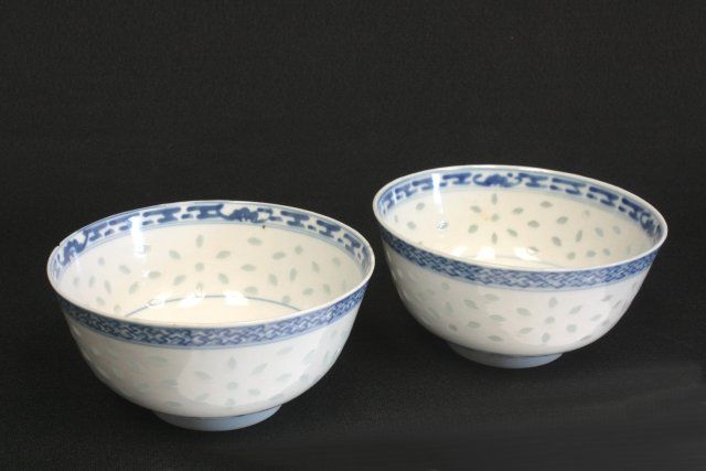 With "Burned Rice" decoration, "5 Bats Surrounding Shou Character", Deokuang marks on bases. Approx. 4.75" x 2.25". Please read our terms of sale.