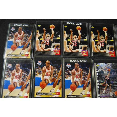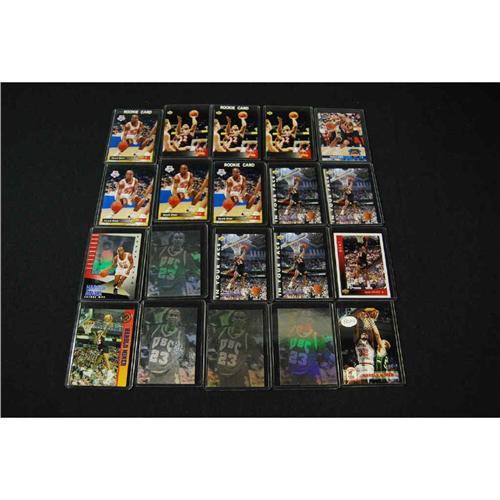(1) 1993 Upper Deck RS9, (1) 1993 Upper Deck 33, (1) 1993 Upper Deck 21, (1) 1993 Ballstreet, (1) 1993 Skybox Promo Card, (4) 1992 Upper Deck 8, (3) 1993 Upper Deck 469, (4) 1992 Upper Deck 446, (4) 1992 Front Row Limited Edition.