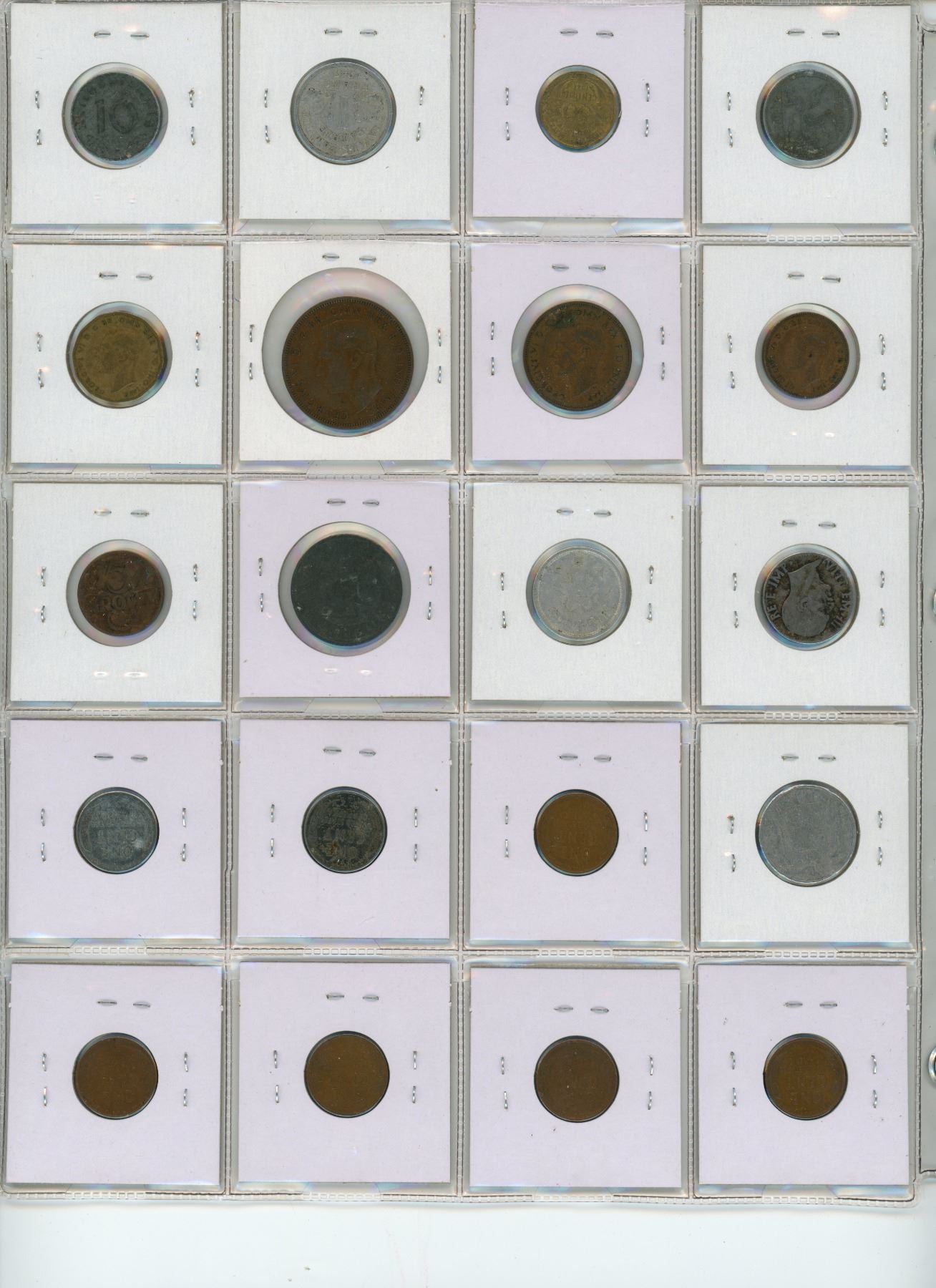 Set of 20 World War II Coins From Belgium, France, Nazi Germany, Great Britain, Italy, Japan, Nether
