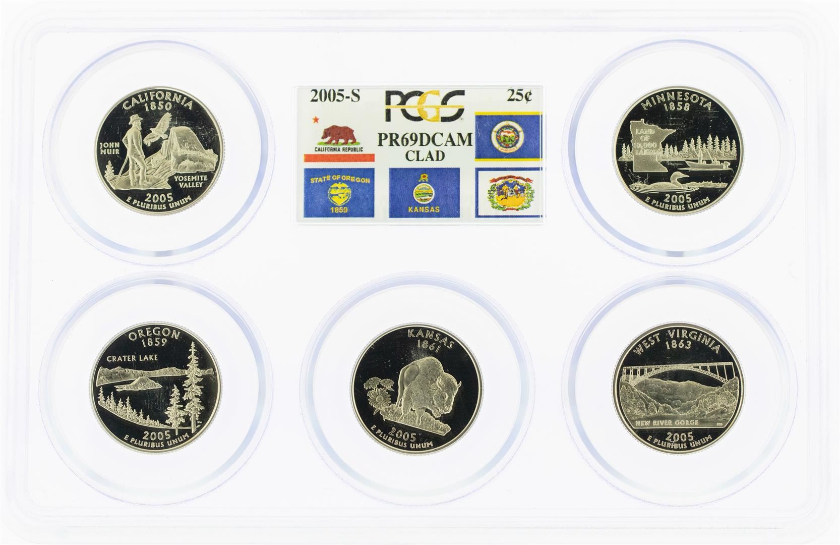 One Set of 2005-S (5) Coin Proof State Quarter Coins PCGS PR69DCAM. PCGS Graded.