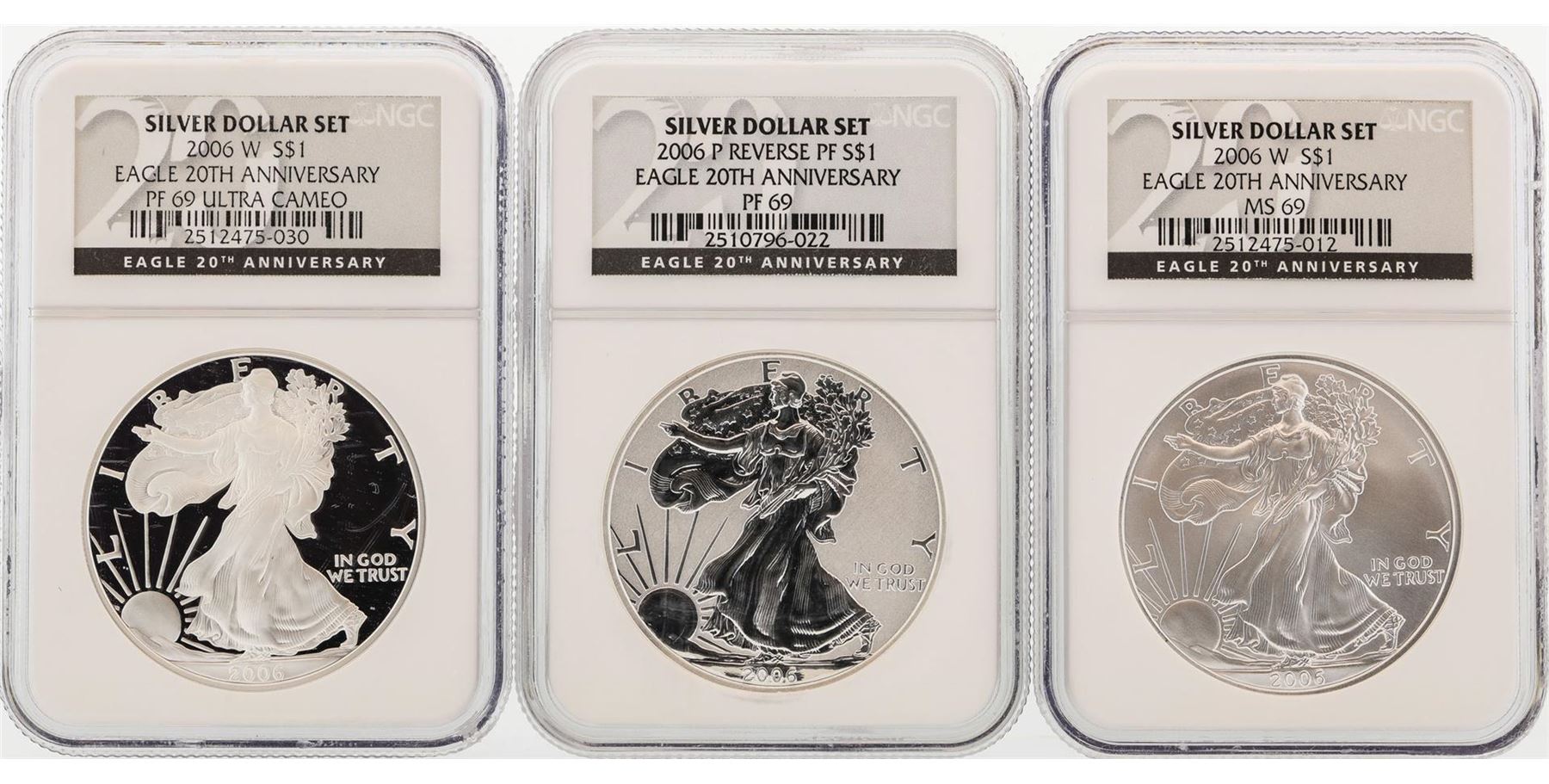 One Set of 2006 $1 American Silver Eagle Coins NGC  MS69/PF69 Ultra Cameo Reverse Proof. NGC Certified.