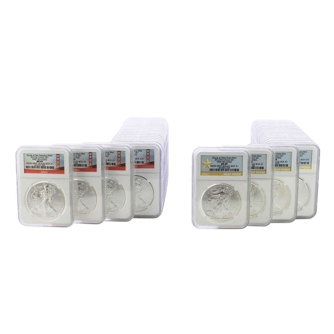 One Set of 2012-S/W $1 American Silver Eagle Coins NGC MS69 from Mint Sealed Box's 1-20. NGC Certified.