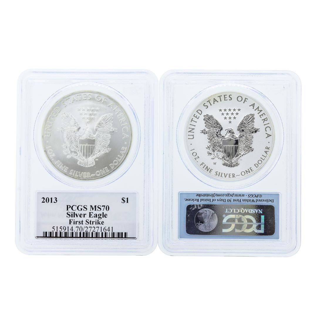 One Set of 2013 & 2013-W $1 American Silver Eagle Coin PCGS MS70 & PR70. PCGS Graded.