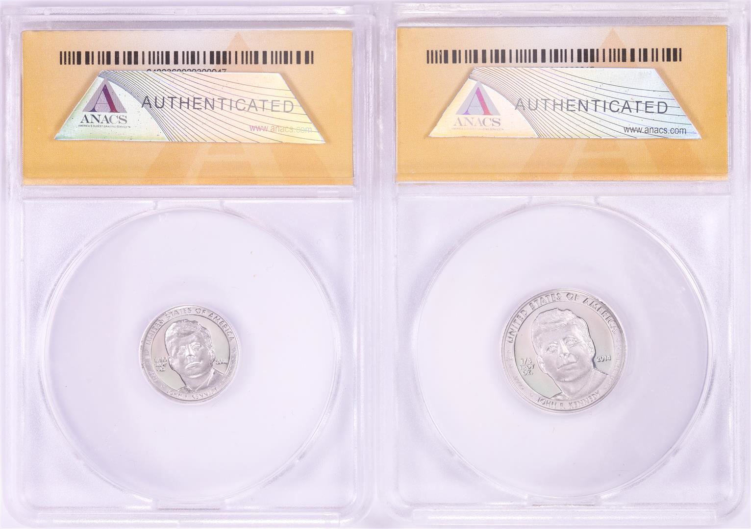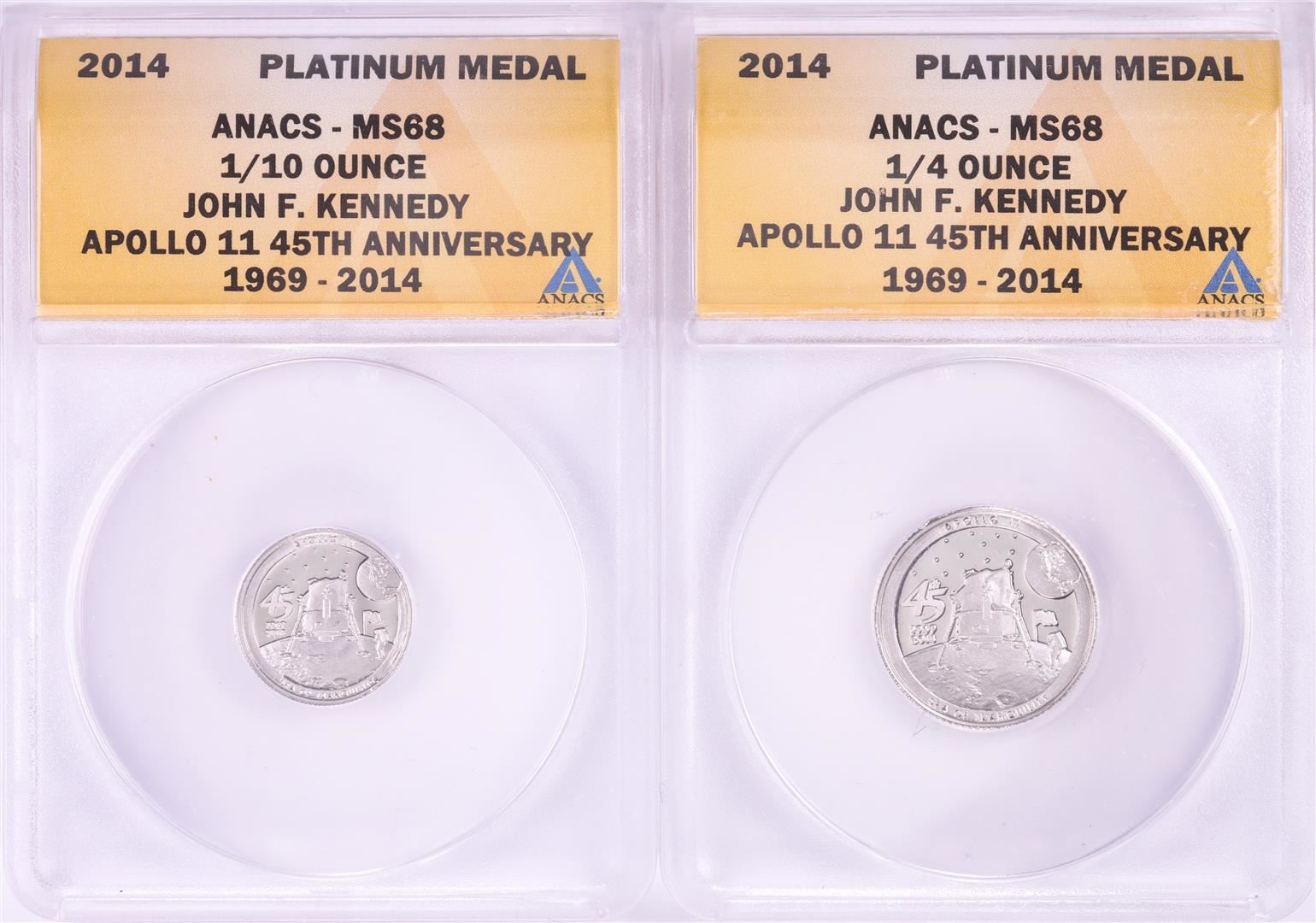 Set of 2014 Proof 1/10 & 1/4 oz Platinum JFK Apollo 11 Anniversary Medals ANACS MS68