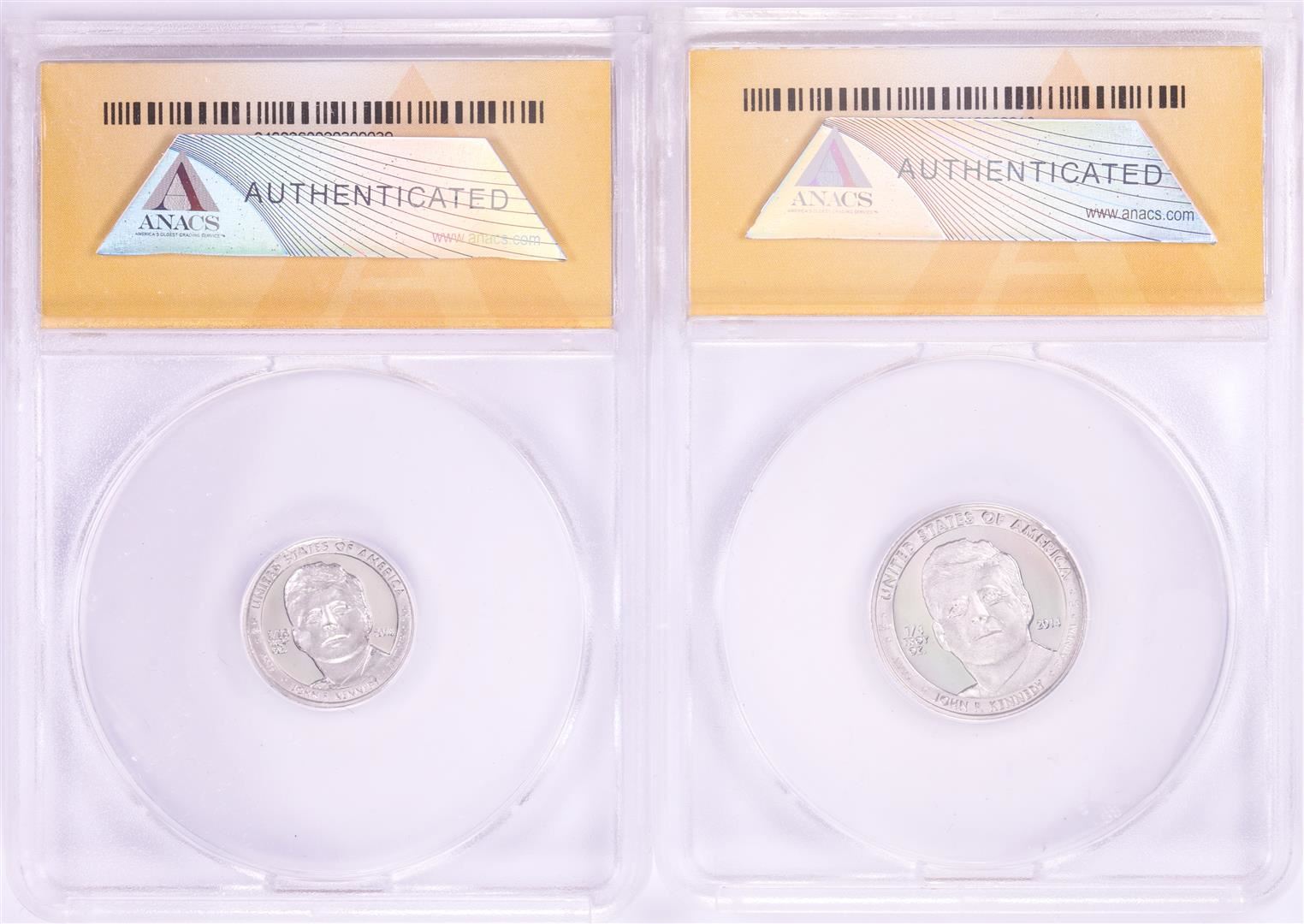 One Set of 2014 Proof 1/10 & 1/4 oz Platinum JFK Apollo 11 Anniversary Medals ANACS MS68. ANACS Certified.