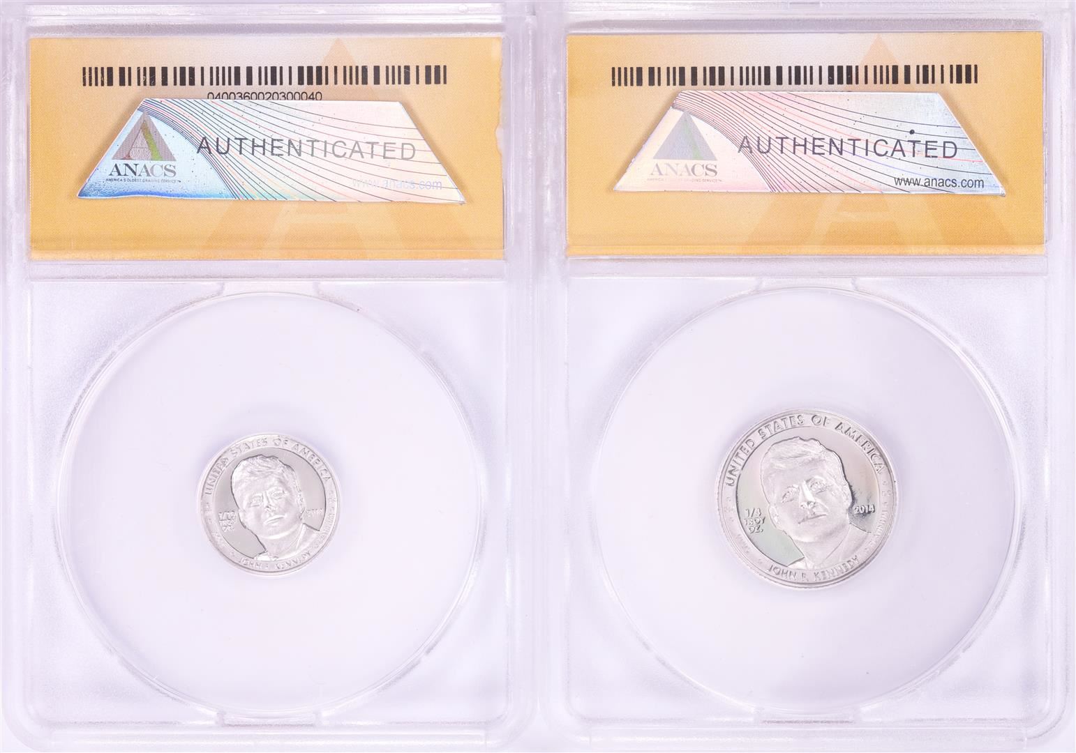 One Set of 2014 Proof 1/10 & 1/4 oz Platinum JFK Apollo 11 Anniversary Medals ANACS MS68. ANACS Certified.
