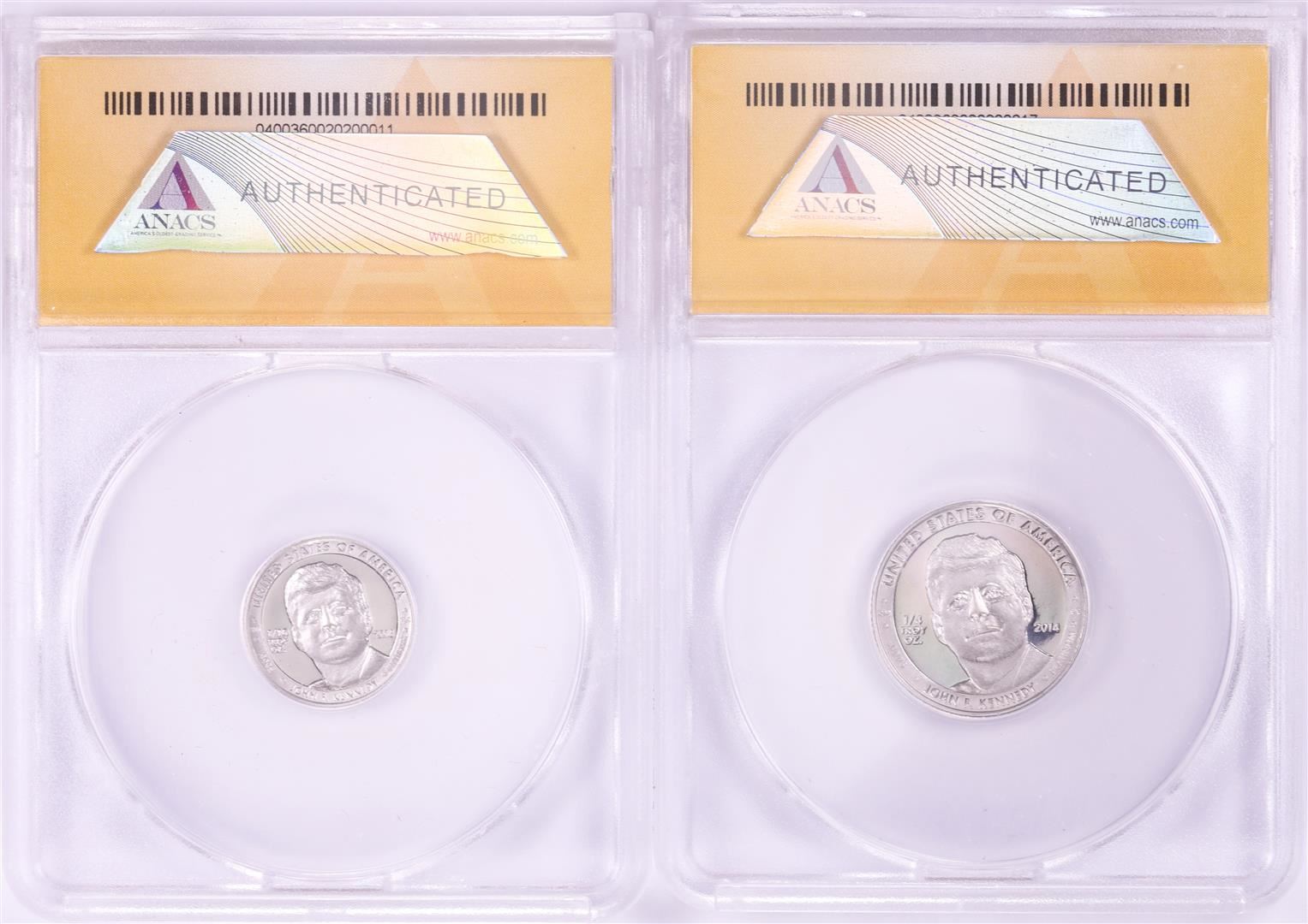 One Set of 2014 Proof 1/10 & 1/4 oz Platinum JFK Apollo 11 Anniversary Medals ANACS MS69. ANACS Certified.