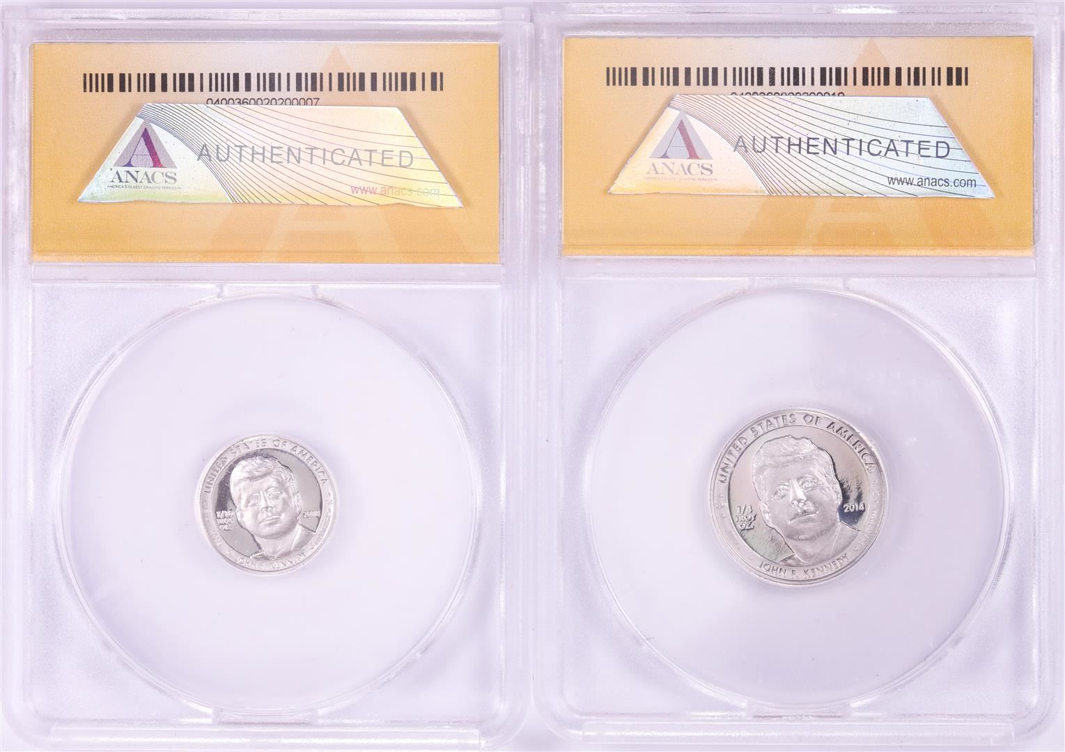 One Set of 2014 Proof 1/10 & 1/4 oz Platinum JFK Apollo 11 Anniversary Medals ANACS MS69. ANACS Certified.
