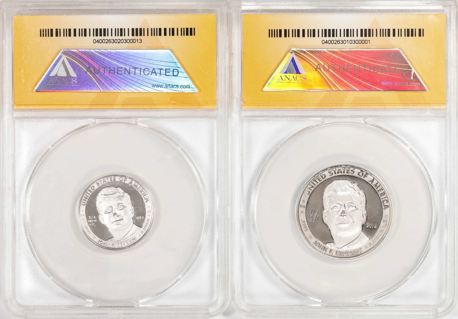One Set of 2014 Proof 1/4 oz & 1/2 oz Platinum JFK Apollo 11 Anniversary Medal ANACS MS68. ANACS Certified.