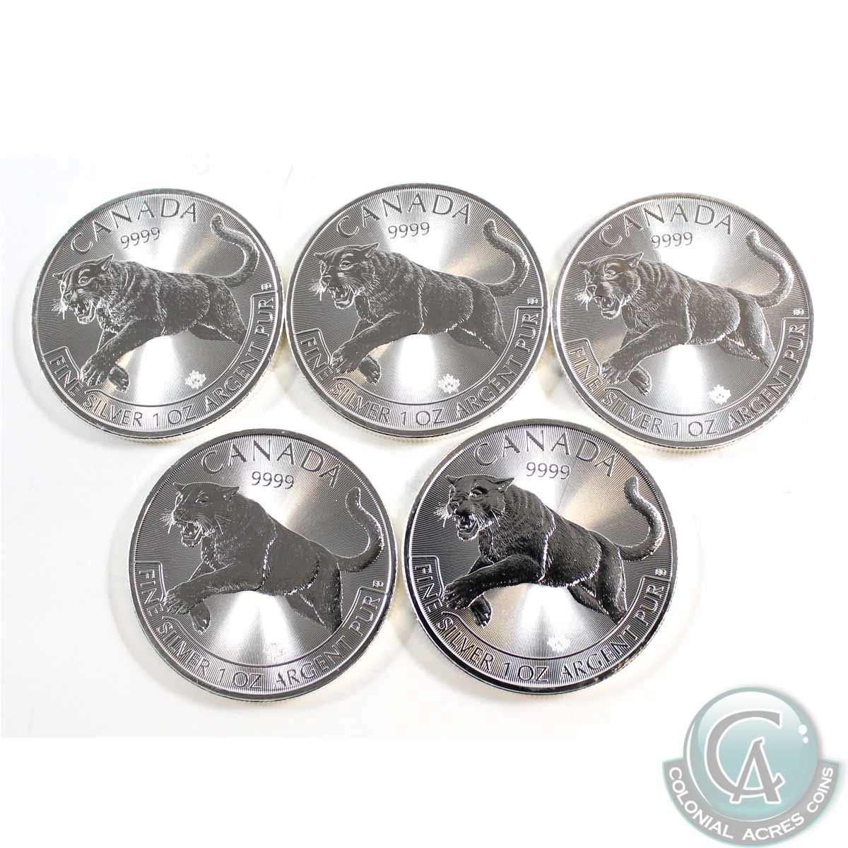 Set of 2016 Canada $5 Predator Series - Cougar Fine Silver Coins (Tax Exempt). 5pcs.