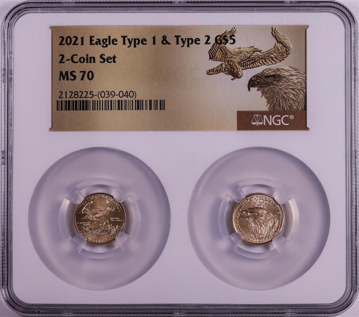 Set of 2021 Type 1 & Type 2 $5 American Gold Eagle Coins NGC MS70