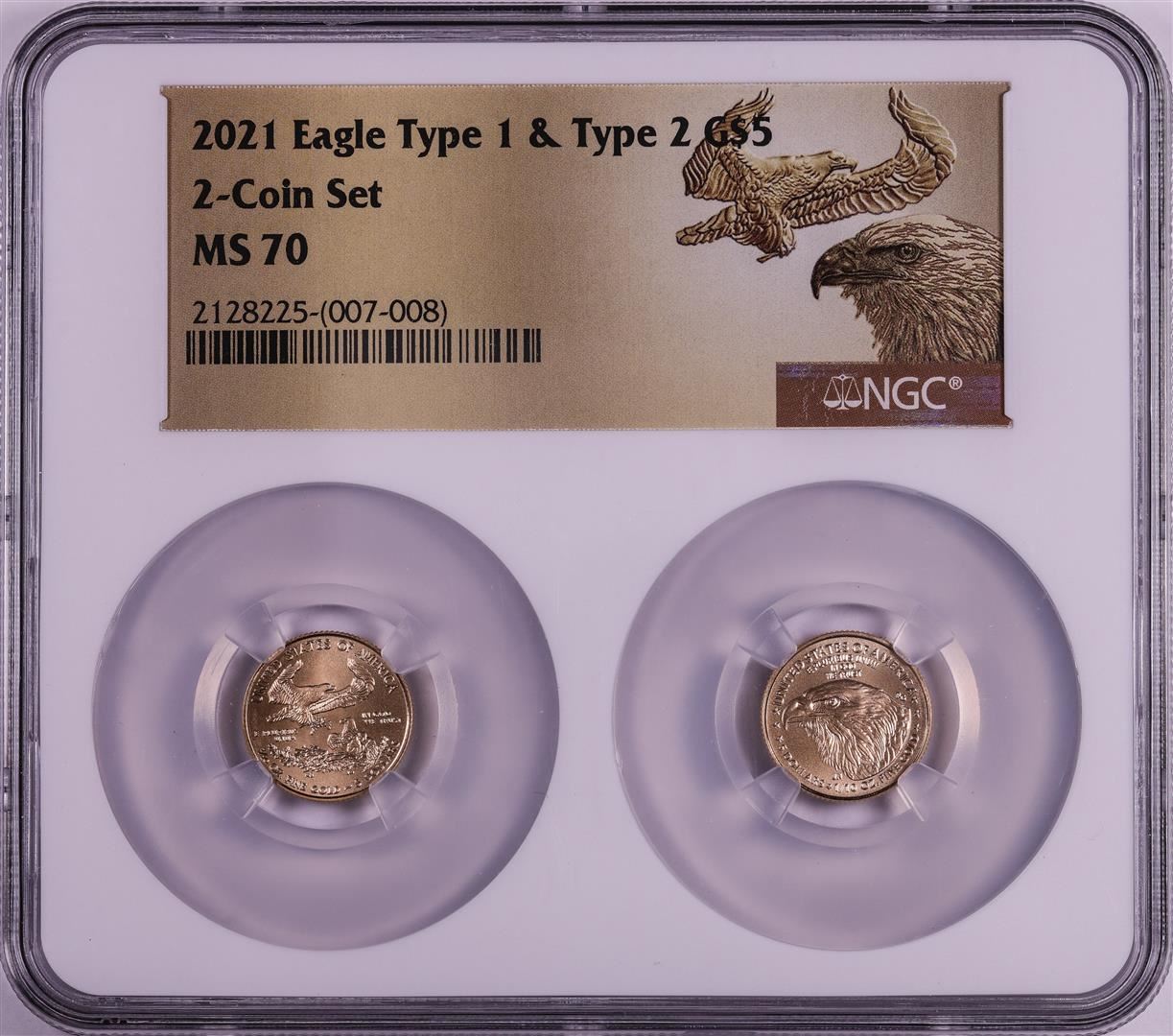 Set of 2021 Type 1 & Type 2 $5 American Gold Eagle Coins NGC MS70