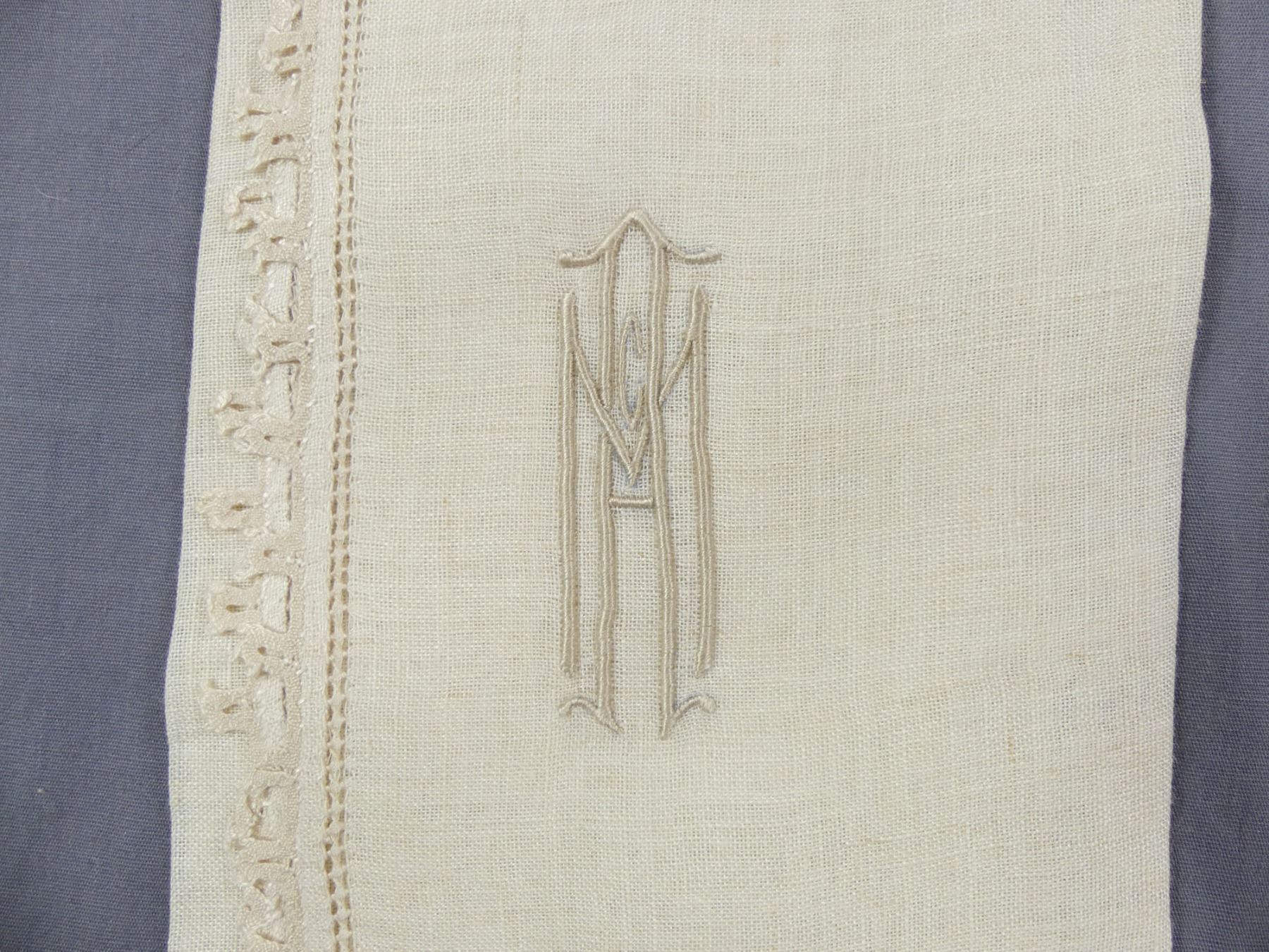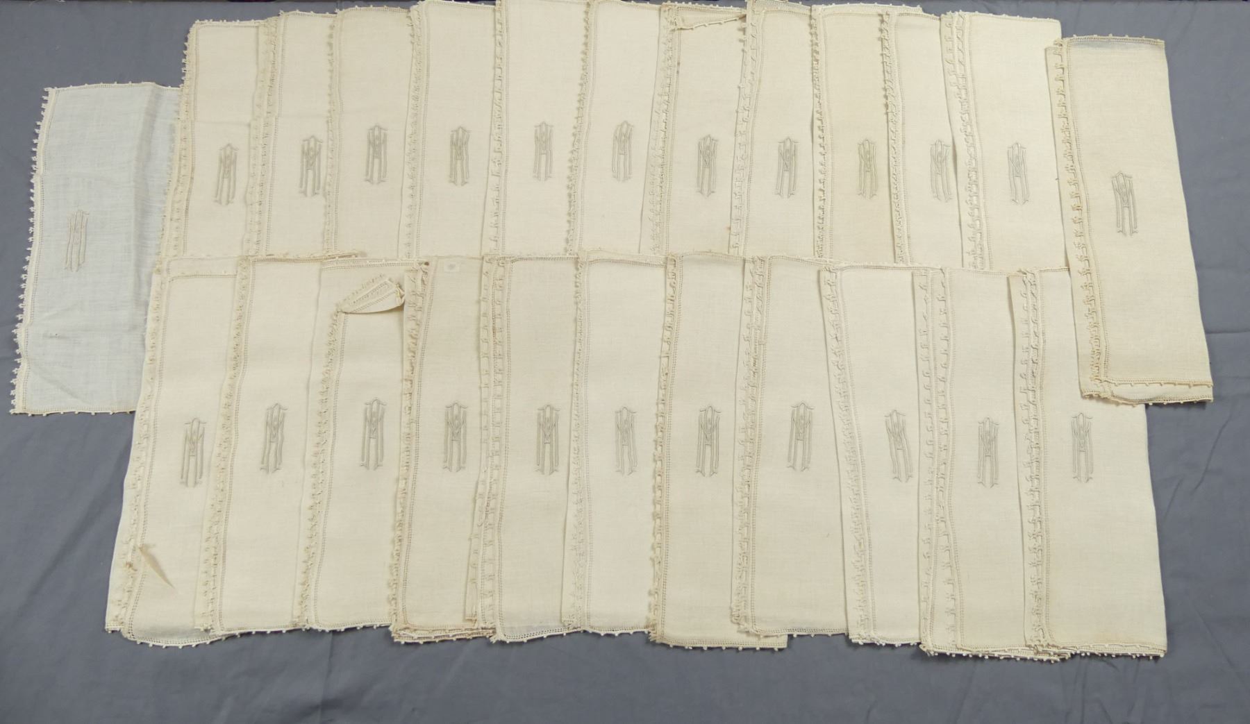 Set of 24 European Monogrammed Dinner Napkins from Rockefeller Estate