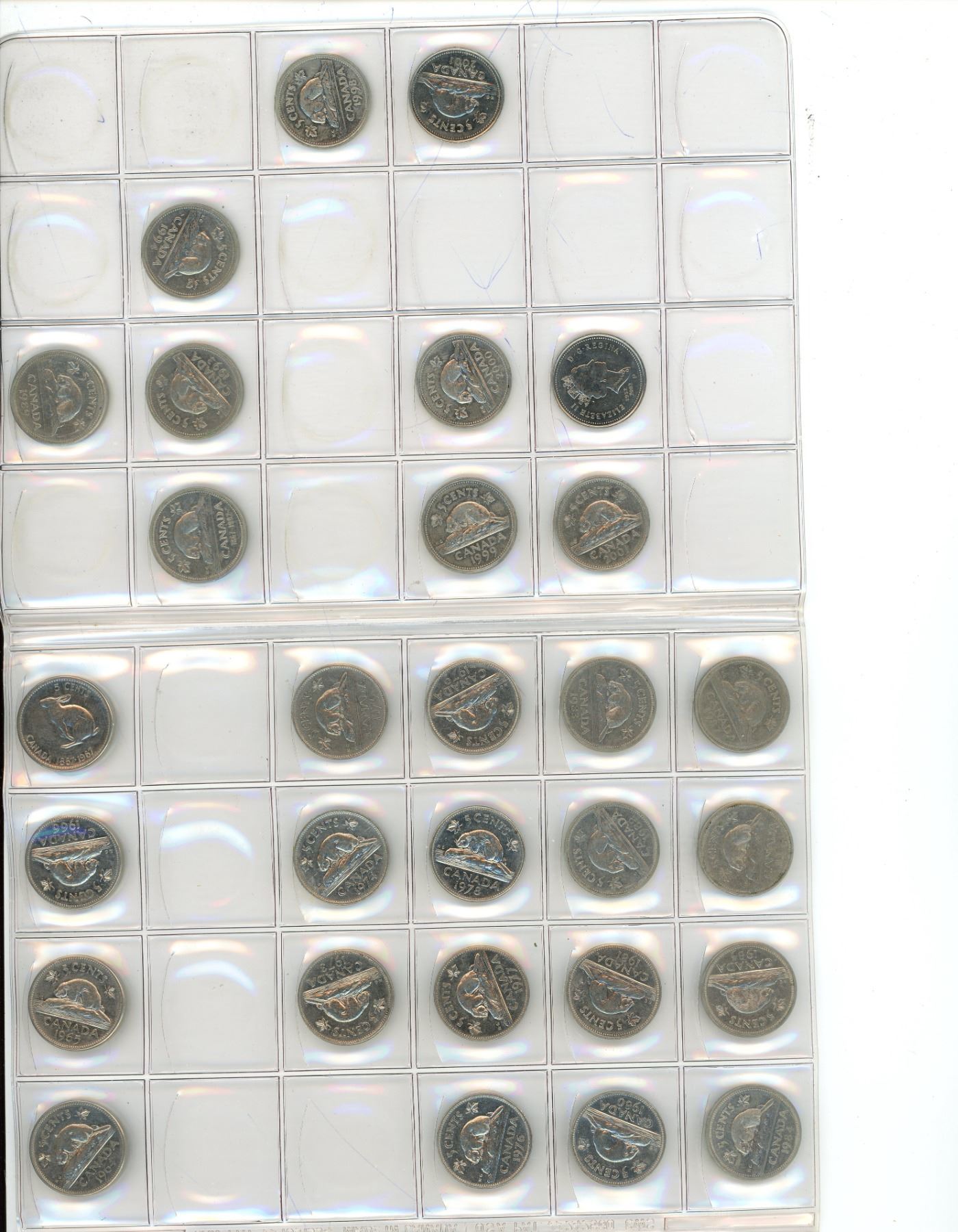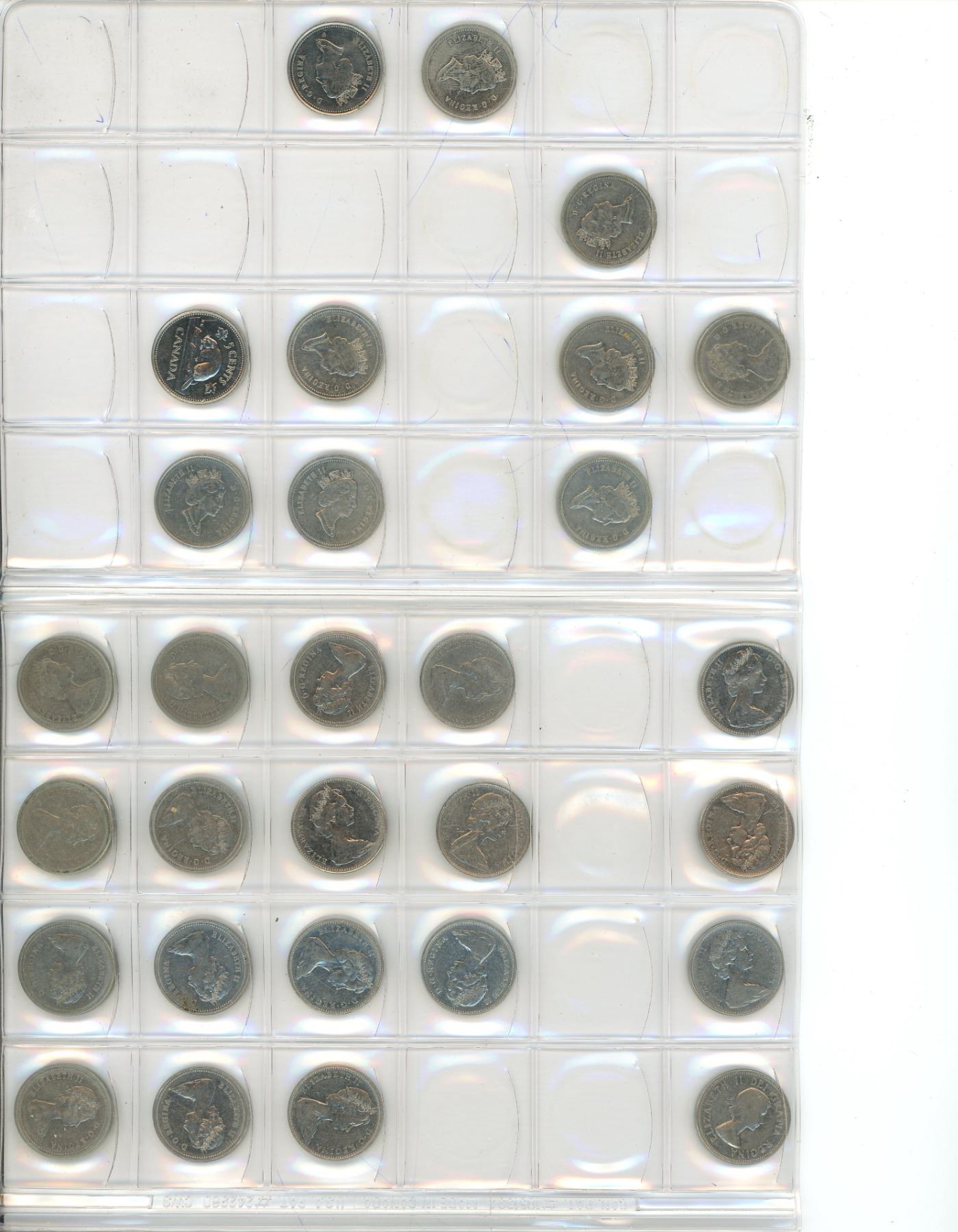Set of 29 Canadian Queen Elizabeth Nickels from 1964 to 2002P. Housed in a Slip E-Z folder